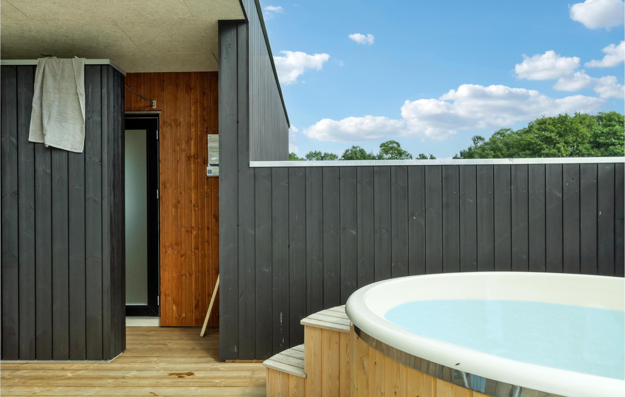 På terrassen kan I fuldt ud nyde solen og det vidunderlige panorama. De lune sommerdage rundes af med en dejlig grillmiddag under åben himmel. Når mørket falder på, kan I bløde de ømme muskler op i vildmarksbadet og mærke den kølige natteluft fra en behagelig position i det varme vand.
