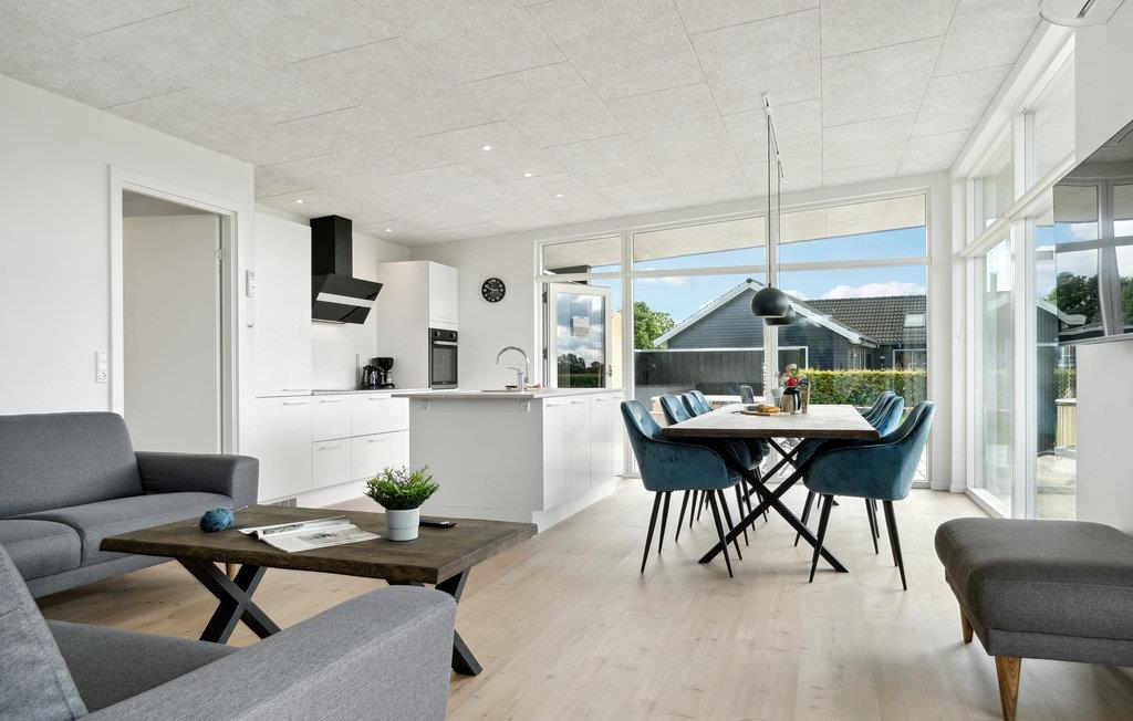 Velkommen til Als, hvor I finder dette helt igennem skønne hus, som er en perfekt ramme om en familieferie. Her kommer I ikke til at mangle noget! Boligen er lys og fyldt med kvalitetsbevidste løsninger, gode materialer og gennemført æstetik. De store vinduespartier giver jer direkte udsigt til et smukt, grønt landskab. Brug aftenerne til at gennemgå dagens oplevelser rundt om spisebordet og læne jer godt tilbage i de bløde møbler.
