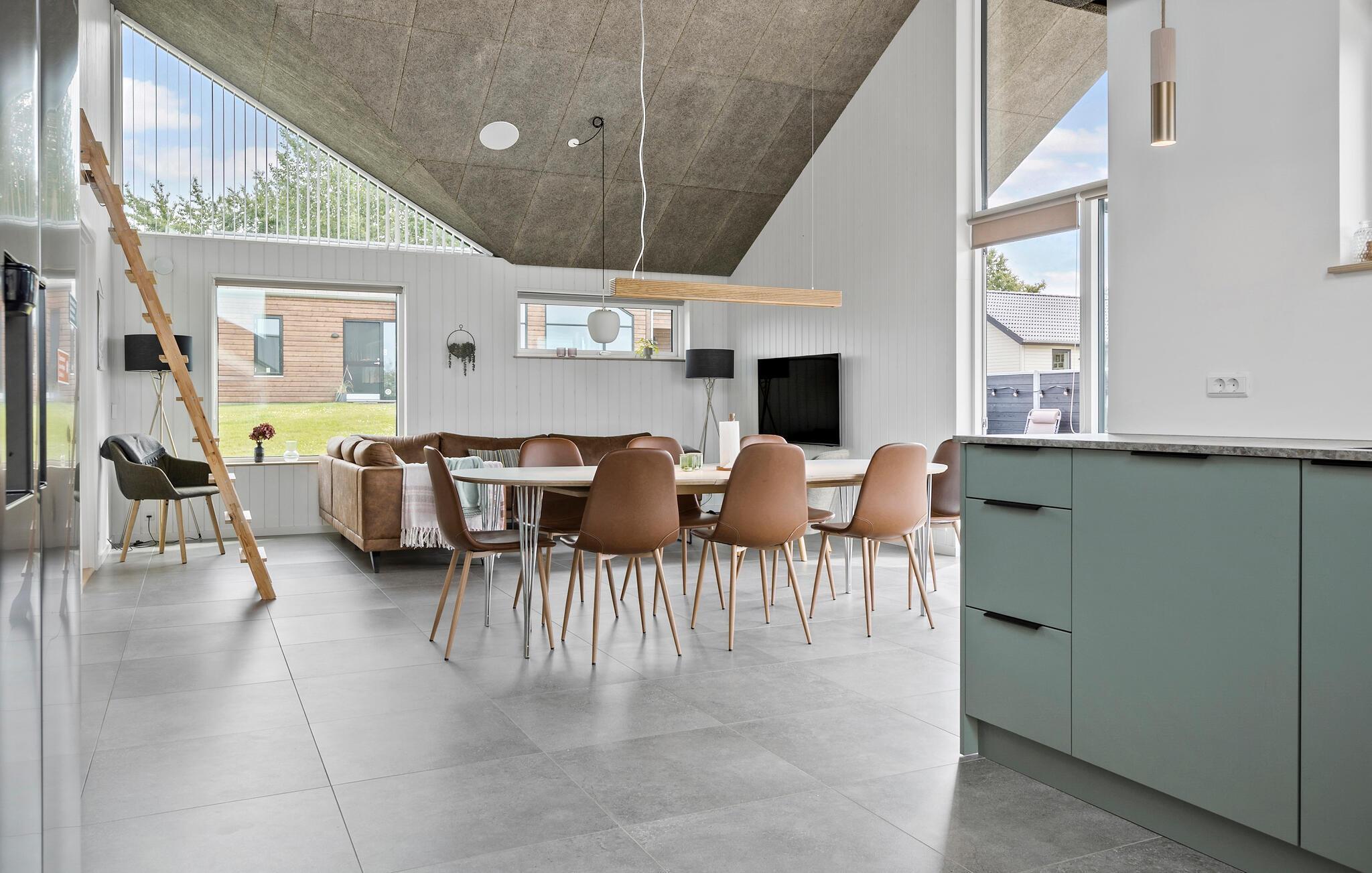 Tag den store familie i hånden og rejs til Als, hvor I i fredelige omgivelser på den nordlige del af øen finder denne lækre perle af en feriebolig. Huset er virkelig flot indrettet med loft til kip, velvalgte materialer og store vinduespartier, der giver dejlige lysindfald til stuen og udsigt til det grønne. Prikken over i'et er den lækre indendørs pool, hvor I og børnene kan plaske rundt uanset vejret. Køkkenet er moderne og fuldt udstyret, så lad blot familiens kokke kræse om livretterne, mens andre snupper et slag pool eller dækker op ved spisebordet med plads til alle.