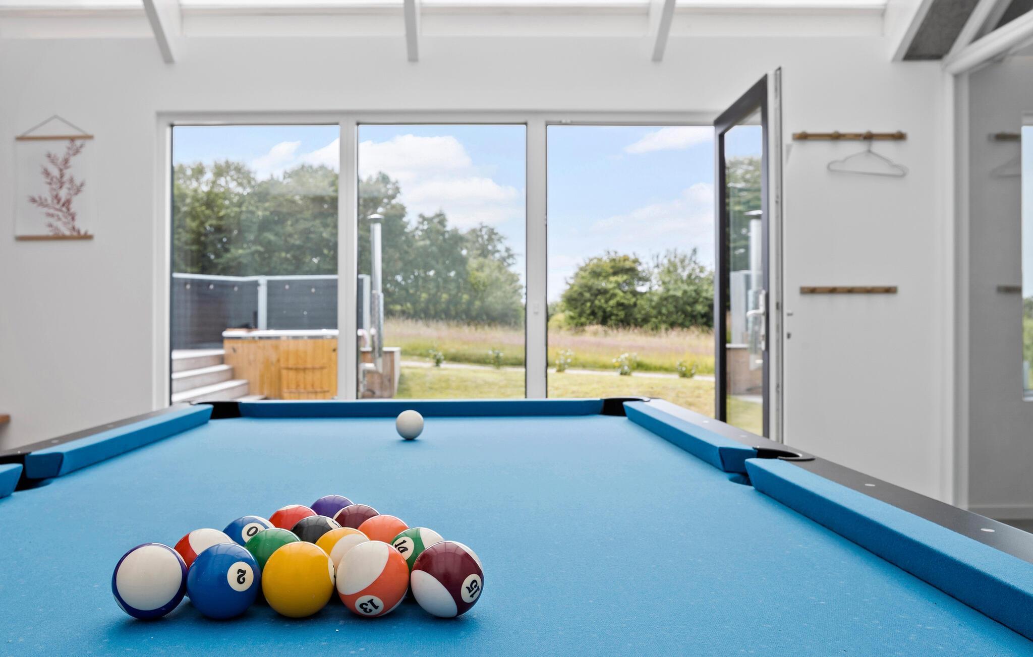 Luksushus med indendørs pool ved Købingsmark Strand på Als, perfekt til familieferie i fredelige omgivelser.