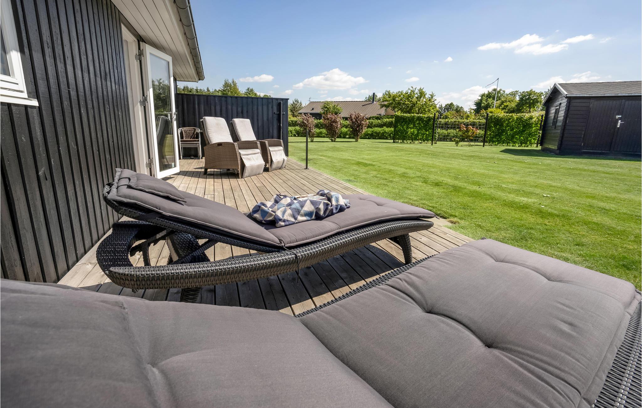 Tag med jeres familie til dette skønne sommerhus og hold en skøn ferie på Als. Huset er traditionelt og indrettet i en behagelig, skandinavisk stil, som gør det nemt at sænke skuldrene og indstille sig på ferie. På terrassen er der mange muligheder for at læne sig tilbage, slappe af eller spise sammen i den friske luft. Børn får god plads til at boltre sig på i den grønne have. Efter en cykeltur kan I stille jeres cykler ind i skuret, som kan låses af, og derefter gøre klar til den store grillmiddag.