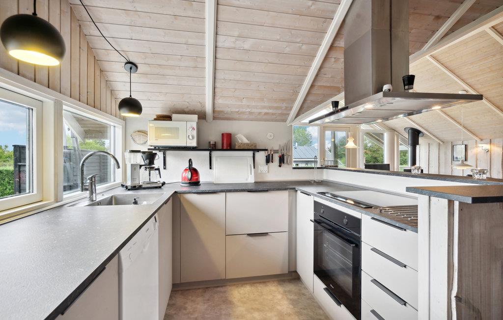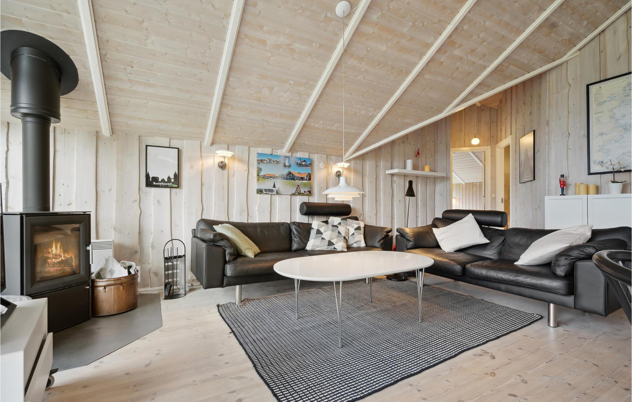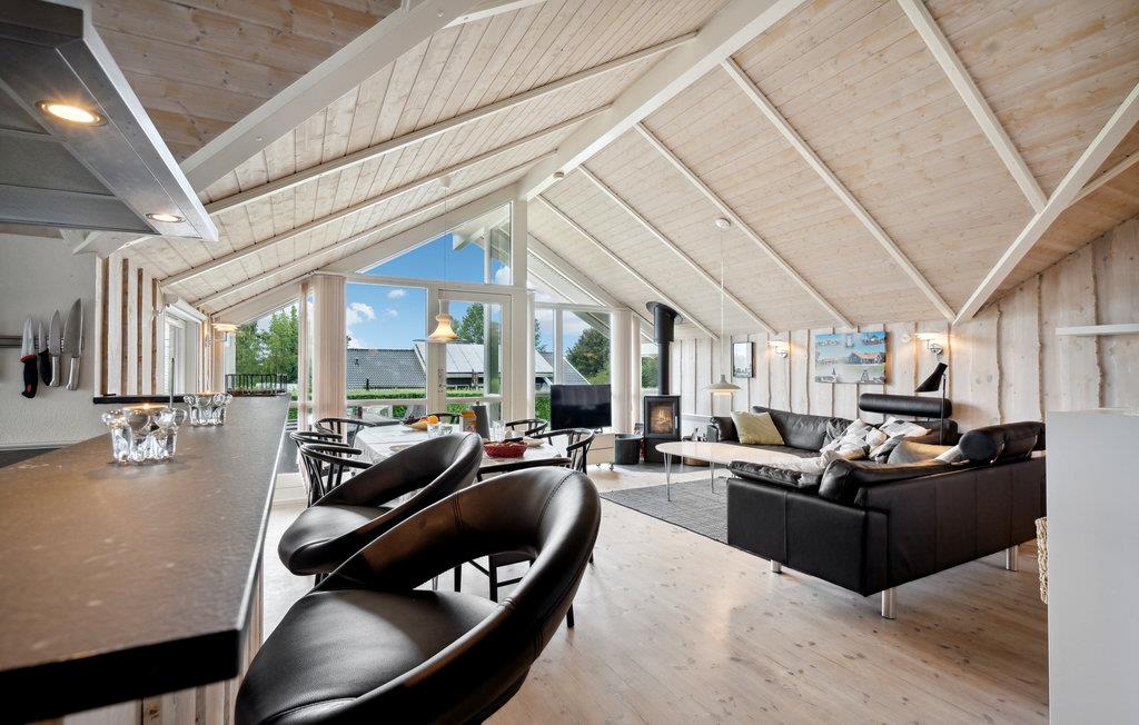 Dette dejlige og vedligeholdte sommerhus er højtbeliggende med en fin udsigt over havet og området. Det åbne veludstyrede køkken ligger i forbindelse med spiseafdelingen og opholdsstuen. I stuen er der både en energivenlig varmepumpe samt en brændeovn, som I kan benytte på de kølige dage og aftener. Både fra stuen og terrassen er der udsigt over havet, hvor Fyn kan ses på den anden side af Lillebælt. I det store badeværelse er der et spabad, hvor I kan få maseret kroppen af det boblende vand. I kan også nyde en tur i saunaen. Huset har tre soveværelser til i alt 7 overnattende gæster. Overalt i huset kan I benytte den hurtige trådløse internetforbindelse. Har I Netflix-abonnement, kan I benytte dette på husets Smart TV. Huset har flere dejlige terrasseområder, således at I både kan nyde morgen- og aftensmaden i solskin. Der er også en overdækket terrasse.