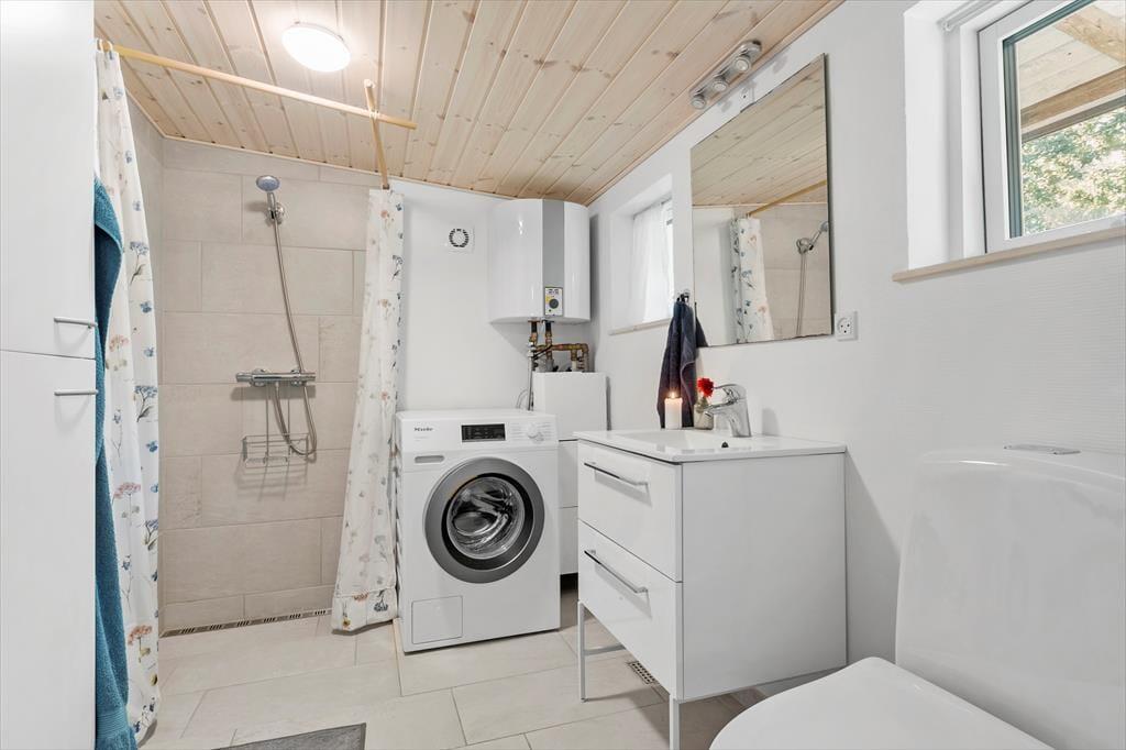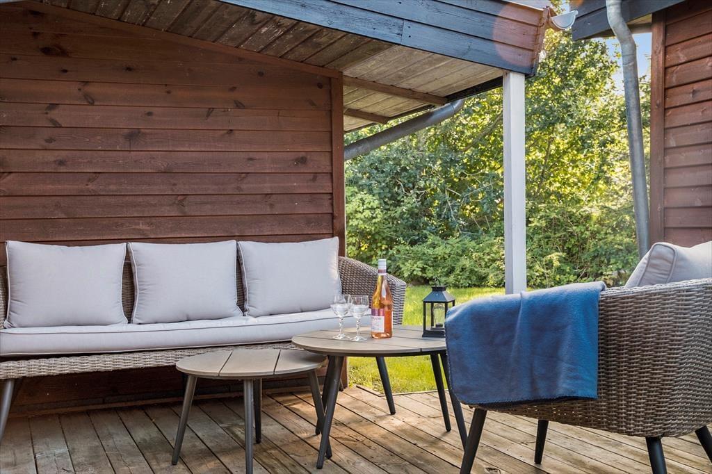 Træd ind i den lyse entré, hvorfra du har adgang til både stuen og videre til værelserne. Det moderne køkken er i åben forbindelse med spiseplads og stue, og derfra er der udgange til terrasserne og den omkringliggende have. Der er 2 soveværelser med hver 2 sovepladser samt et badeværelse med bruseniche og gulvvarme. Huset opvarmes via luft til luft varmepumpe eller du kan tænde op i brændeovnen på de kolde aftener - og skabe den perfekte sommerhusstemning.