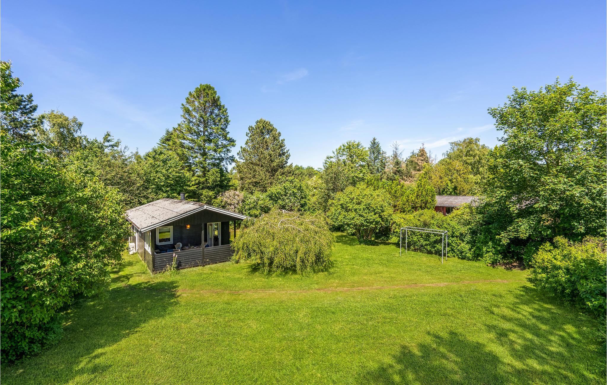 Glæd jer til dette søde lille sommerhus, som er perfekt til et par, venner eller den lille familie. Mellem træerne kan I slappe af, nyde naturens lyde og den friske luft, mens I slapper af i solen. Terrassen byder også på skyggefulde pletter, og brændeovnen i stuen skaber en hyggelig atmosfære om aftenen.