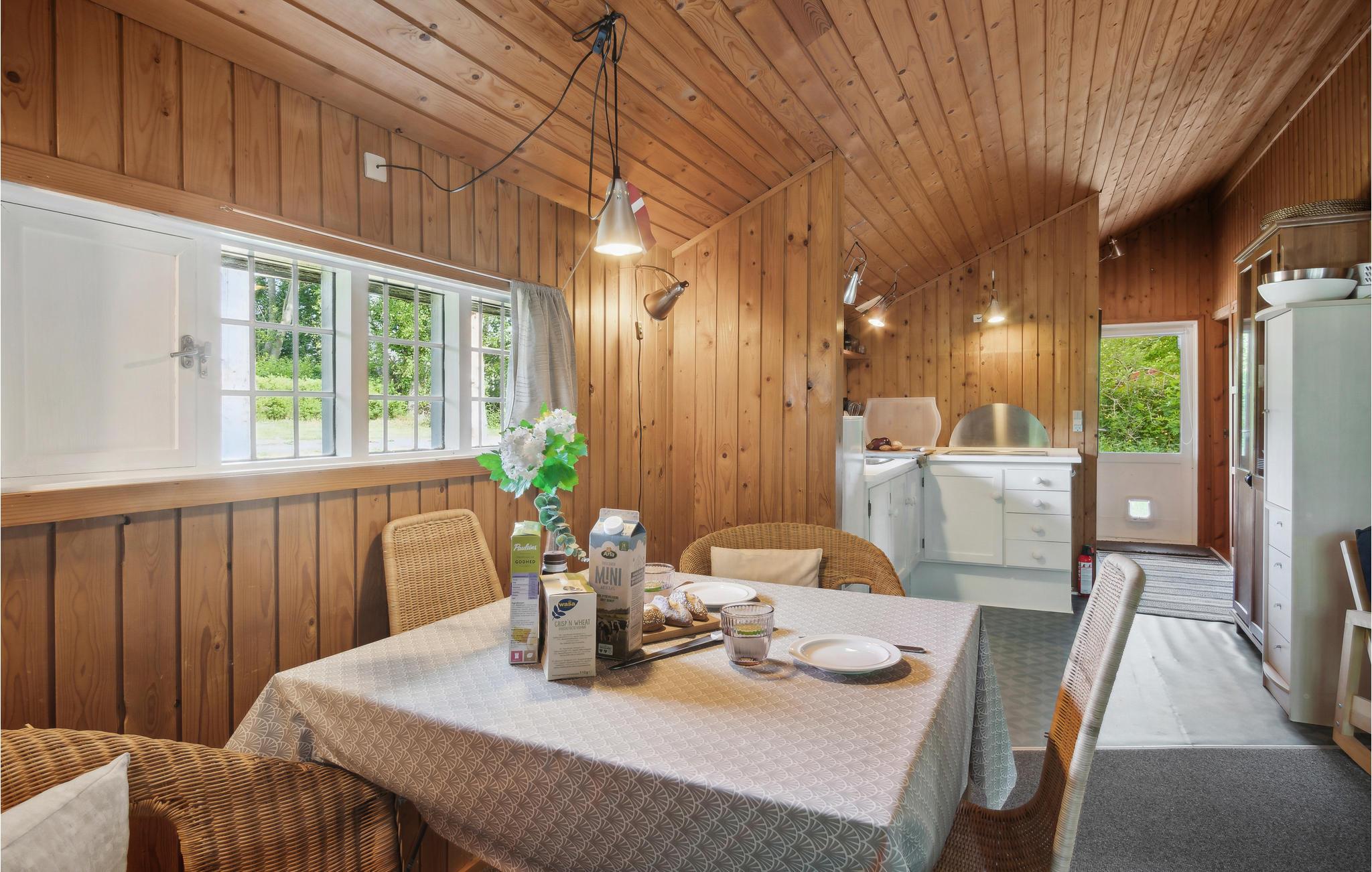 Tilbring afstressende hyggedage i dette feriehus. Det indbydende hus med klassisk sommerhuscharme er perfekt til dem, der sætter pris på natur- og kulturoplevelser frem for luksus. Lav pandekager sammen med børnene i køkkenet. Spisebordet bliver feriens samlingspunkt. Om aftenen kan I sætte jer godt til rette på sofaerne og se en spændende film. I kan nyde sommeraftenerne med grillmad og lækker salat på den store terrasse og slutte aftenen af med et glas vin og et spil kort.