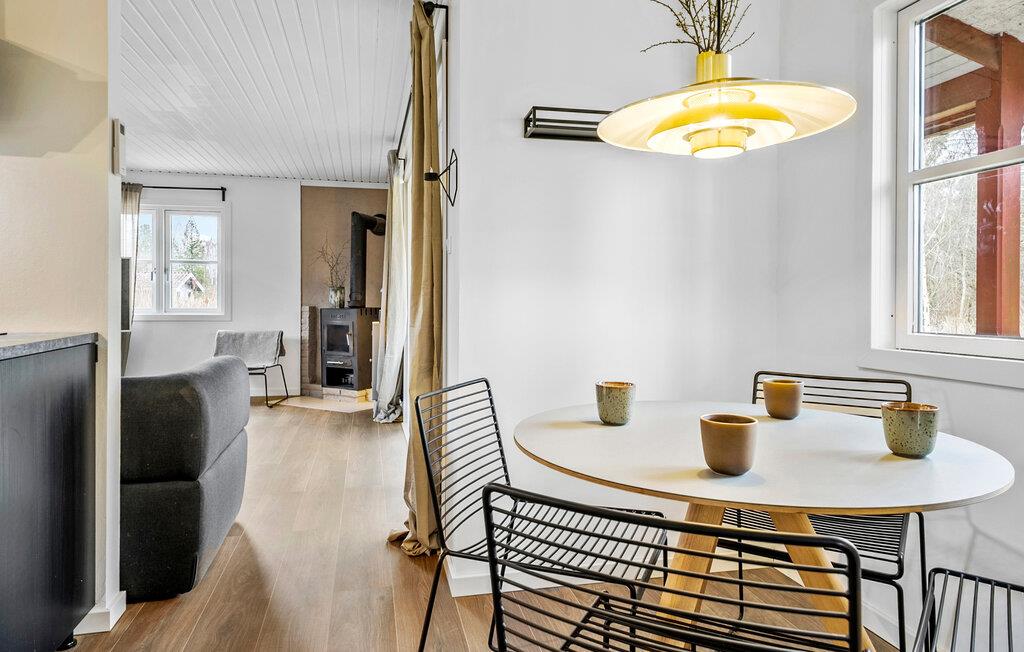 I kan se frem til nogle velfortjente feriedage i dette kompakte hus, som ligger meget fredeligt og naturskønt. Huset er hyggeligt og indbydende, så her er det nemt at slappe af. Opholdsstuen er udstyret med komfortable møbler og giver gode rammer til at samles efter en lang dag på farten. I det moderne køkken kan I tilberede lækre retter til familien og derefter nyde måltidet i den lyse spisestue med udsigt til haven.