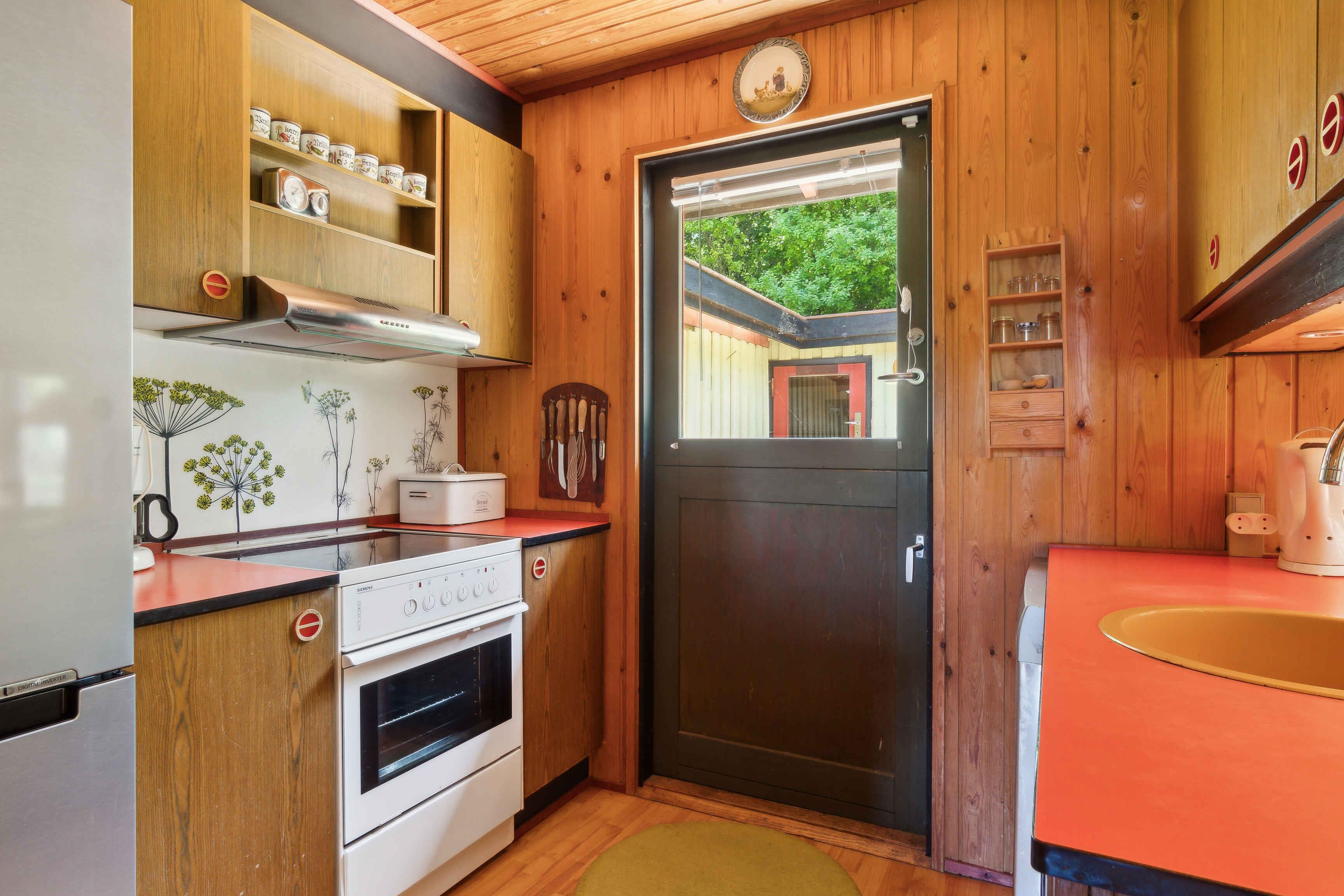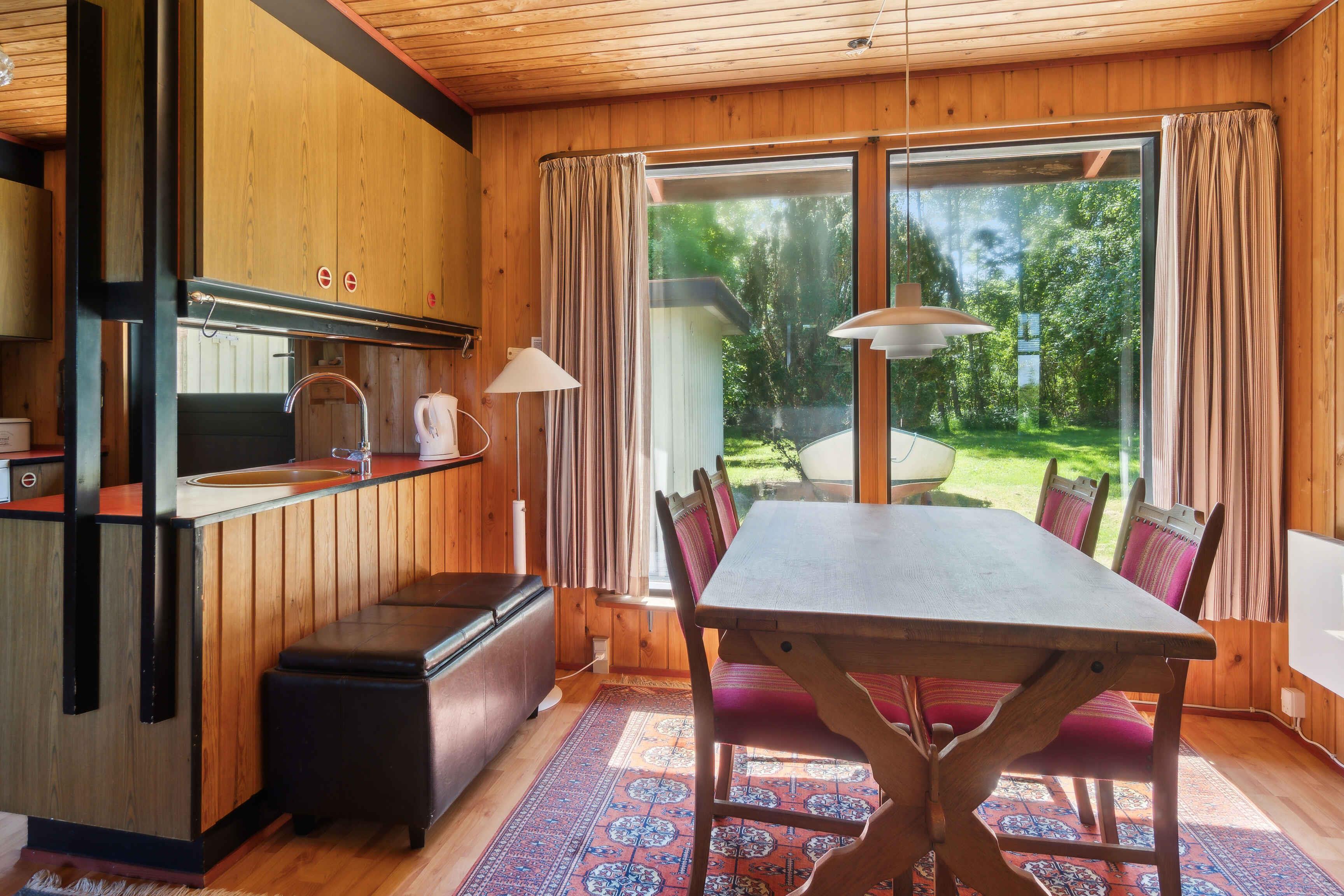 Sommerhuset er det perfekte tilflugtssted ved kysten. Ferieboligen har et kombineret køkken og spisestue, udstyret faciliteter som induktionskomfur, opvaskemaskine og mikroovn.