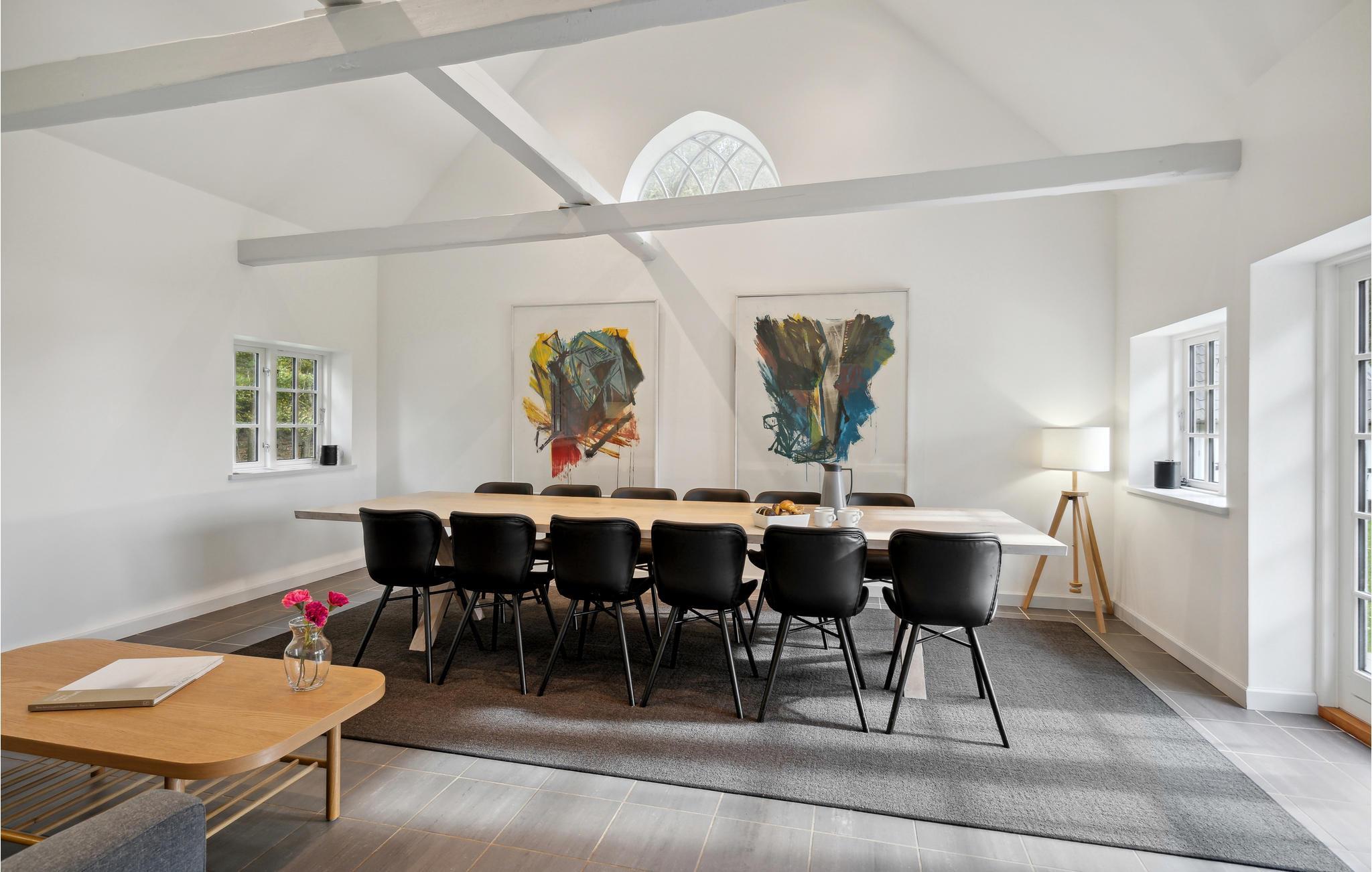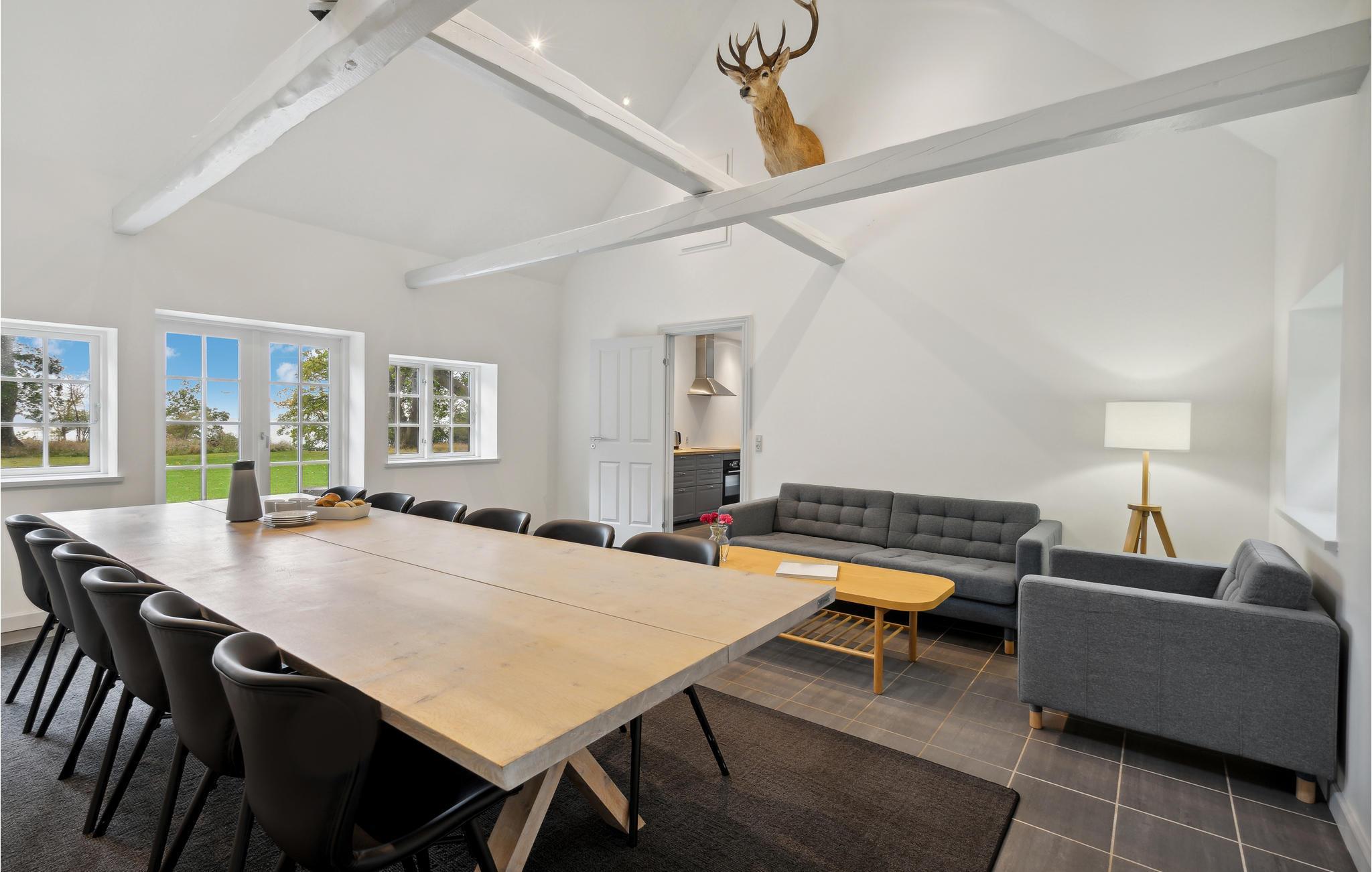 Tag med jeres udvidede familie eller gode venner til øen Gavnø ved Karrebæk Fjord og nyd en fantastisk ferie i denne rummelige bolig bestående af to feriehuse. Mens bindingsværket udenfor byder jer velkommen med historisk charme, møder I indenfor en tiltalende atmosfære med høje, hvidmalede lofter, moderne design og enkel stil. Det er det ideelle sted at tilbringe ferien med leg, fælles madlavning og ren afslapning. Huset ligger på den sydlige del af øen, tæt på vandet, og giver jer mulighed for at nyde udsigten over fjorden, mens I griller og jeres børn løber rundt på græsplænen. Gå de få skridt til vandet og kast fiskesnøren i. Med lidt held kan I servere jeres friskfangede fisk til aftensmad.