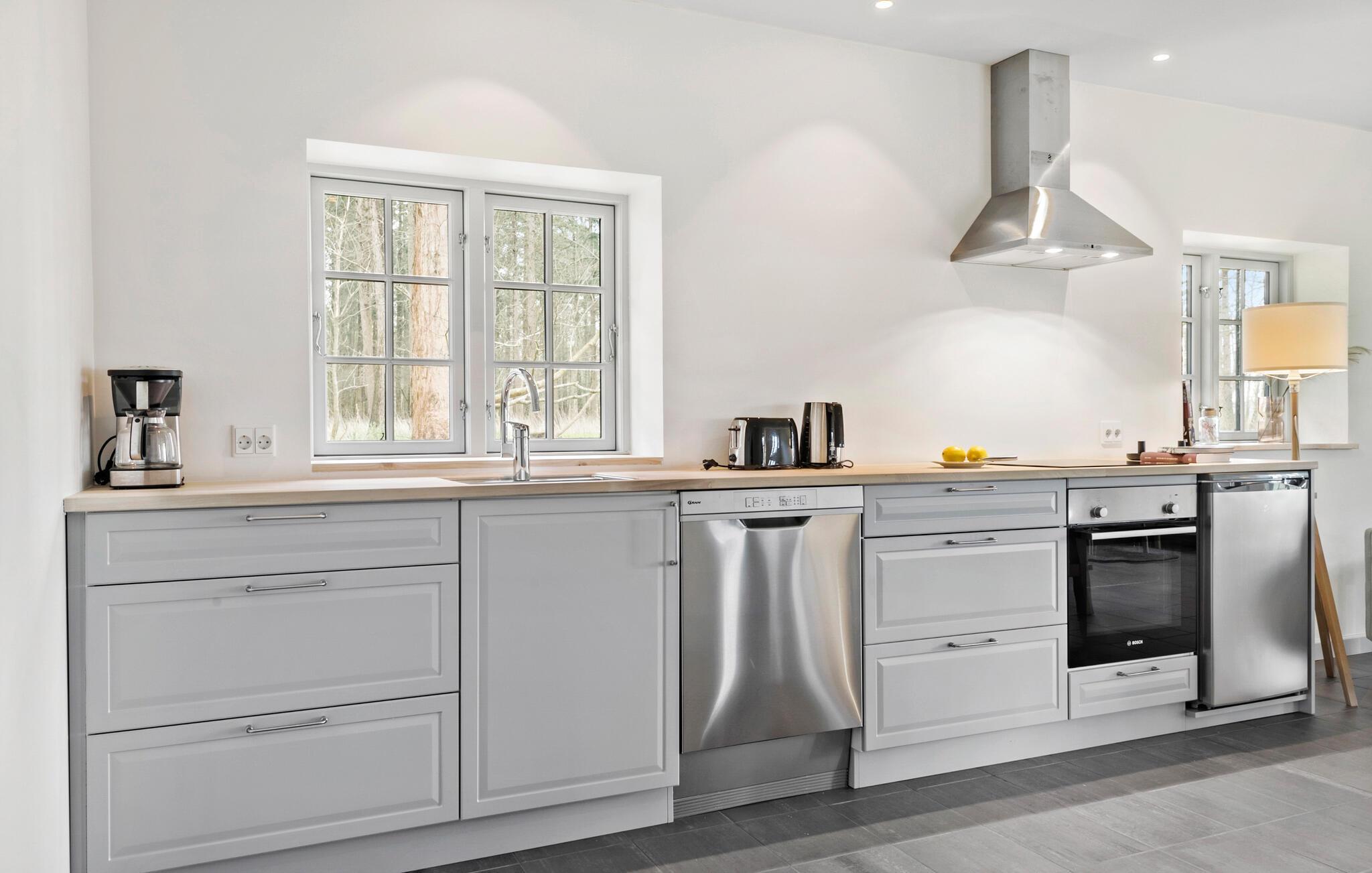 Mærk roen og kom ned i gear i denne store og moderne bolig ved vandet.