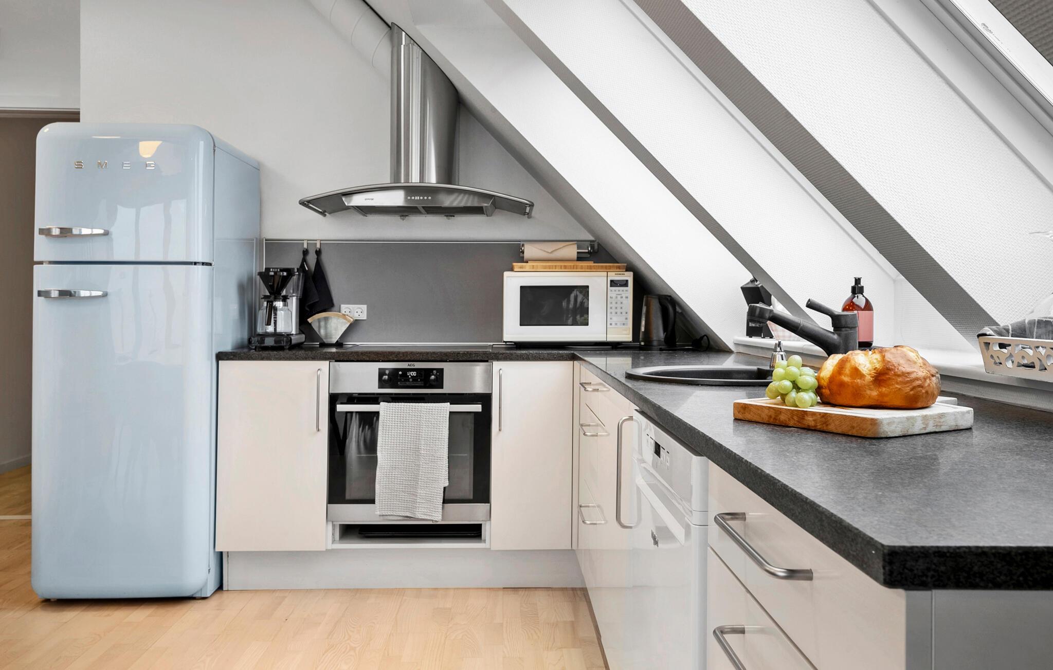 Køkkenet er udstyret med alt i moderne hjælpemidler, og herfra har I udsigt til havnen. Stranden i Karrebæksminde er meget børnevenlig og med blåt flag. Her bor I kun et stenkast fra stranden, restauranter og indkøb. Lejligheden ligger på 1. sal. Lys og venlig, og indrettet med komfortable møbler.
