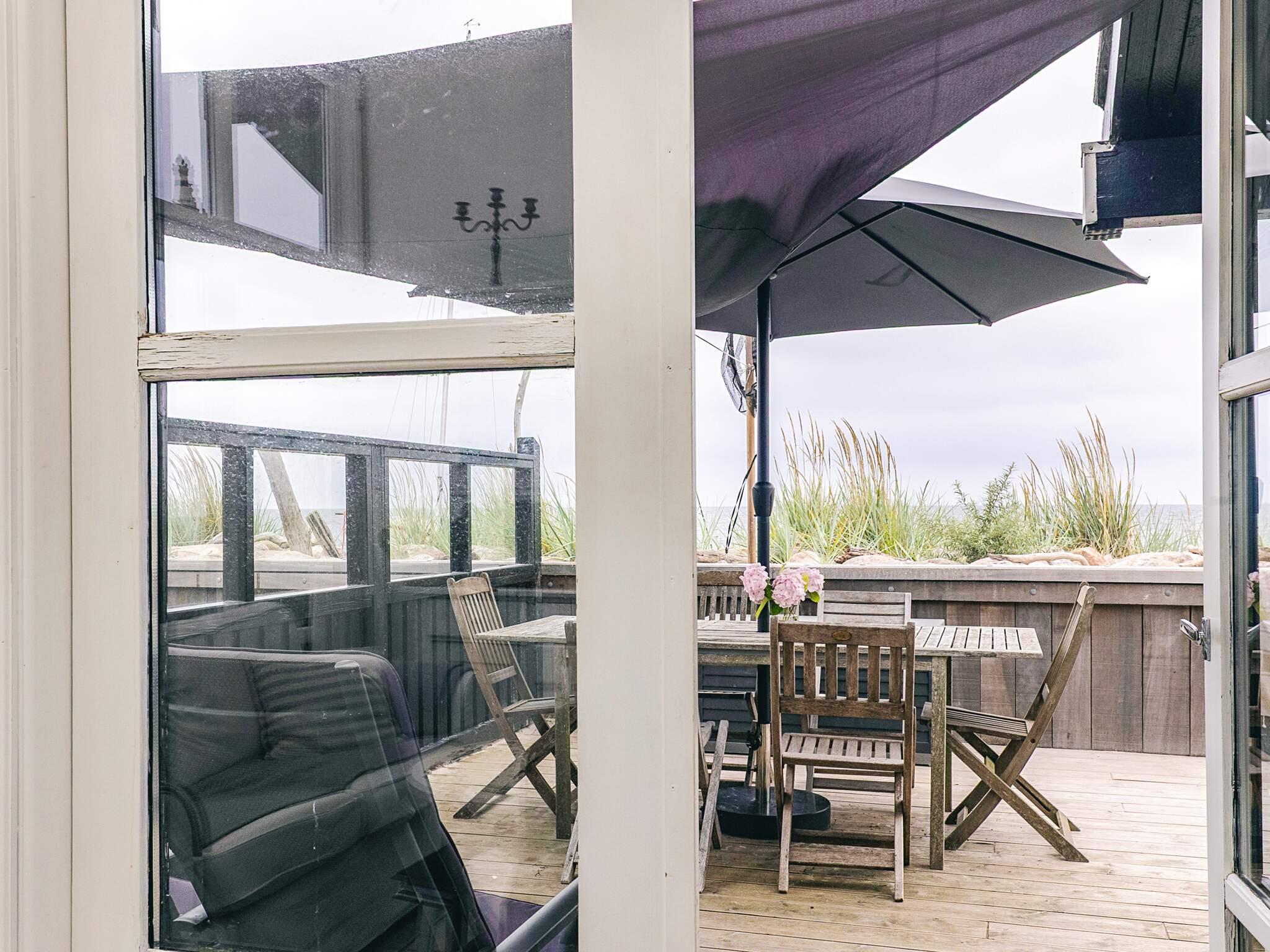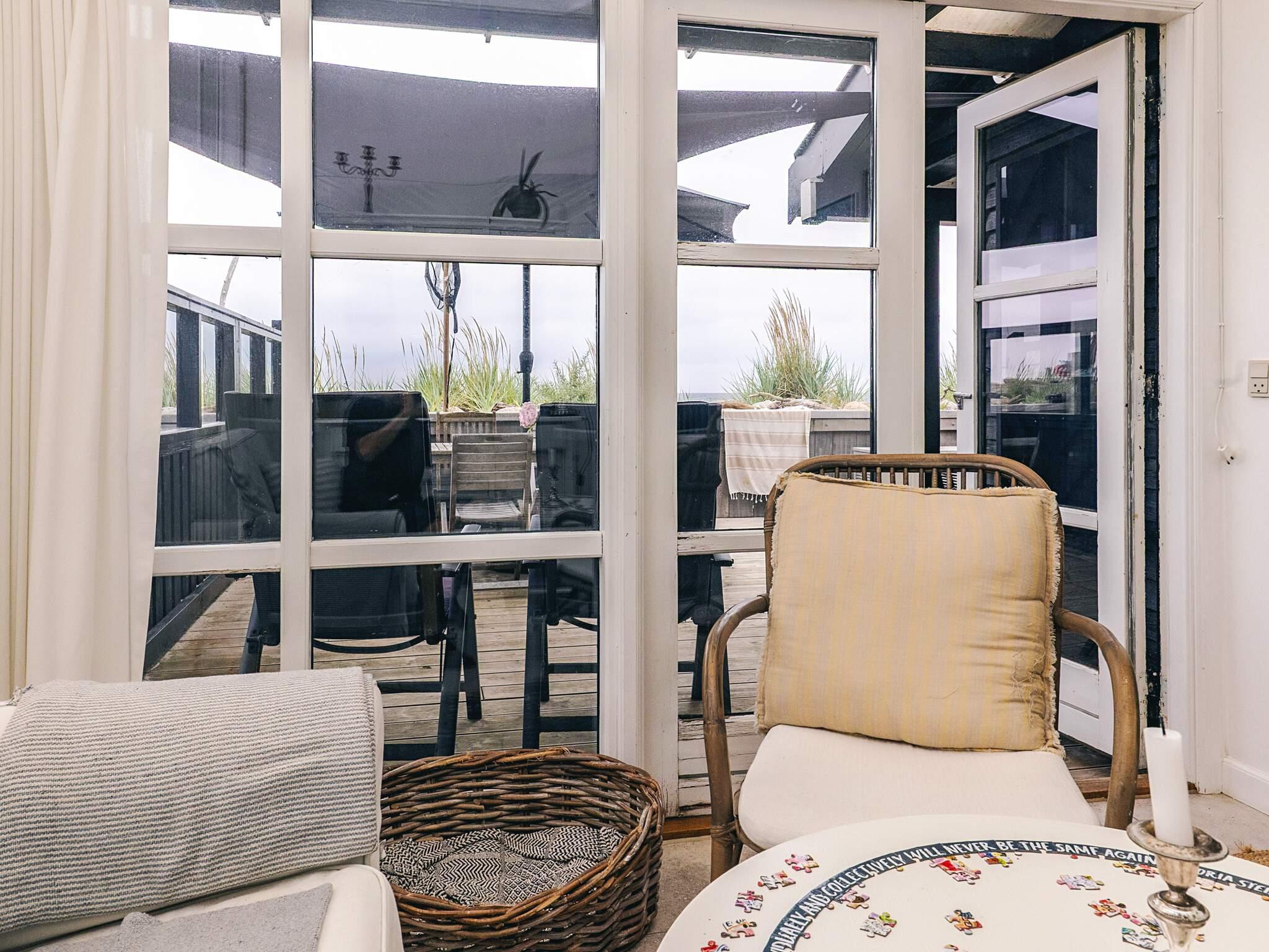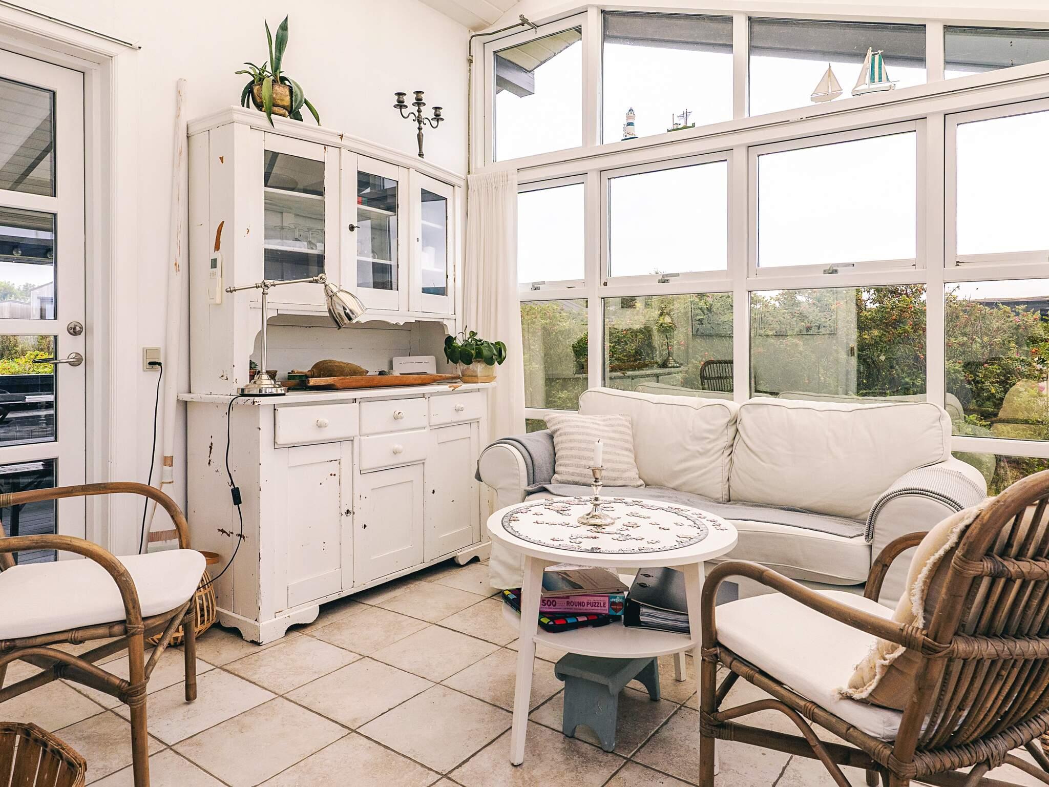 Sommerhuset er indrettet med køkken og stue i åben forbindelse. Fra stuen er der direkte adgang til en udestue, og fra denne er der direkte adgang til terrassen, som ligger lidt i læ for vinden. Fra denne terrasse kan I opleve havets brusen og komme i den rette feriestemning.