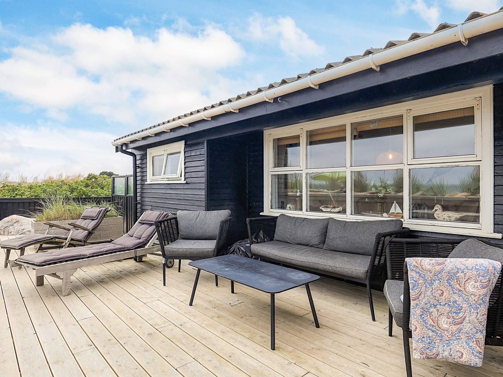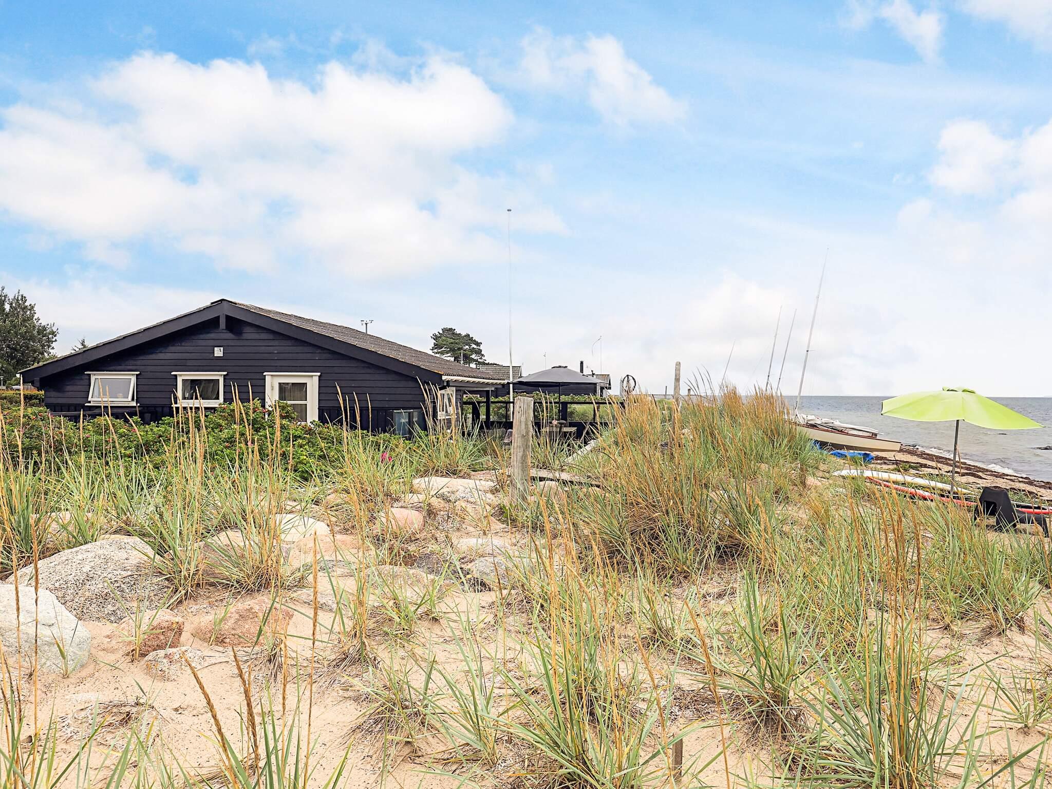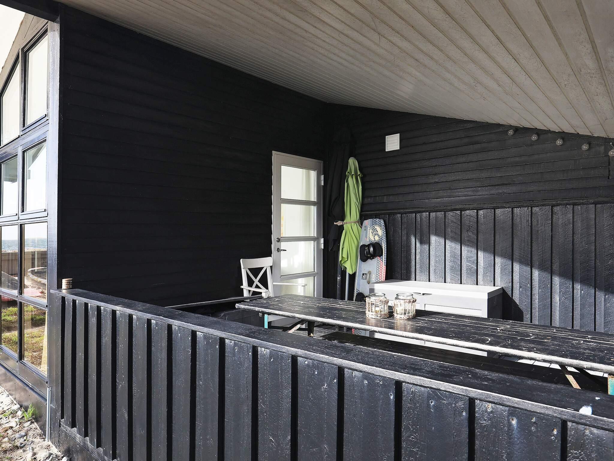 Sommerhuset er indrettet med køkken og stue i åben forbindelse. Fra stuen er der direkte adgang til en udestue, og fra denne er der direkte adgang til terrassen, som ligger lidt i læ for vinden. Fra denne terrasse kan I opleve havets brusen og komme i den rette feriestemning.