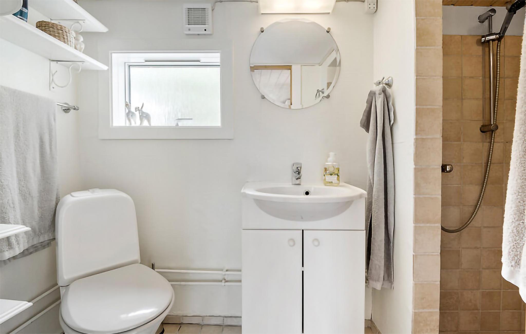 Badeværelse (nr. 1) - WC. Varmt og koldt vand. Bruser