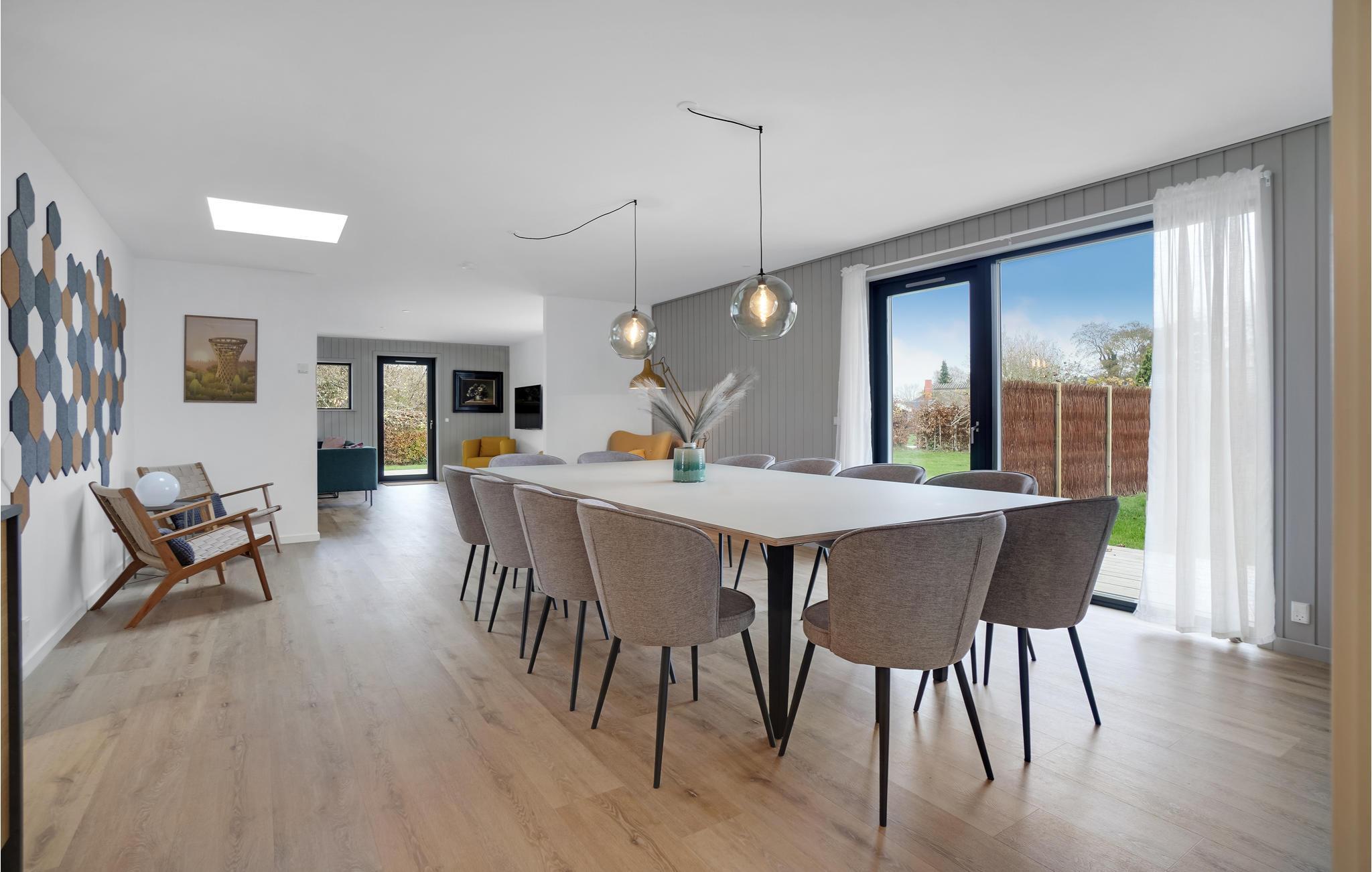 Tag til dette skønne feriehus sammen med den udvidede familie eller jeres gode venner og lad som om, I er hjemme. Huset ligger på Enø og består af flere hyggelige værelser og et langt opholdsrum, hvor I kan lave mad sammen, spille brætspil rundt om spisebordet eller slappe af i sofaen. Flere af rummene har direkte udgang til træterrassen, hvor I kan nyde jeres feriemåltider og se børnene lege i haven. Husets faciliteter inkluderer et vildmarksbad, hvor I kan sidde i al slags vejr og derefter køle ned under udendørsbruseren.