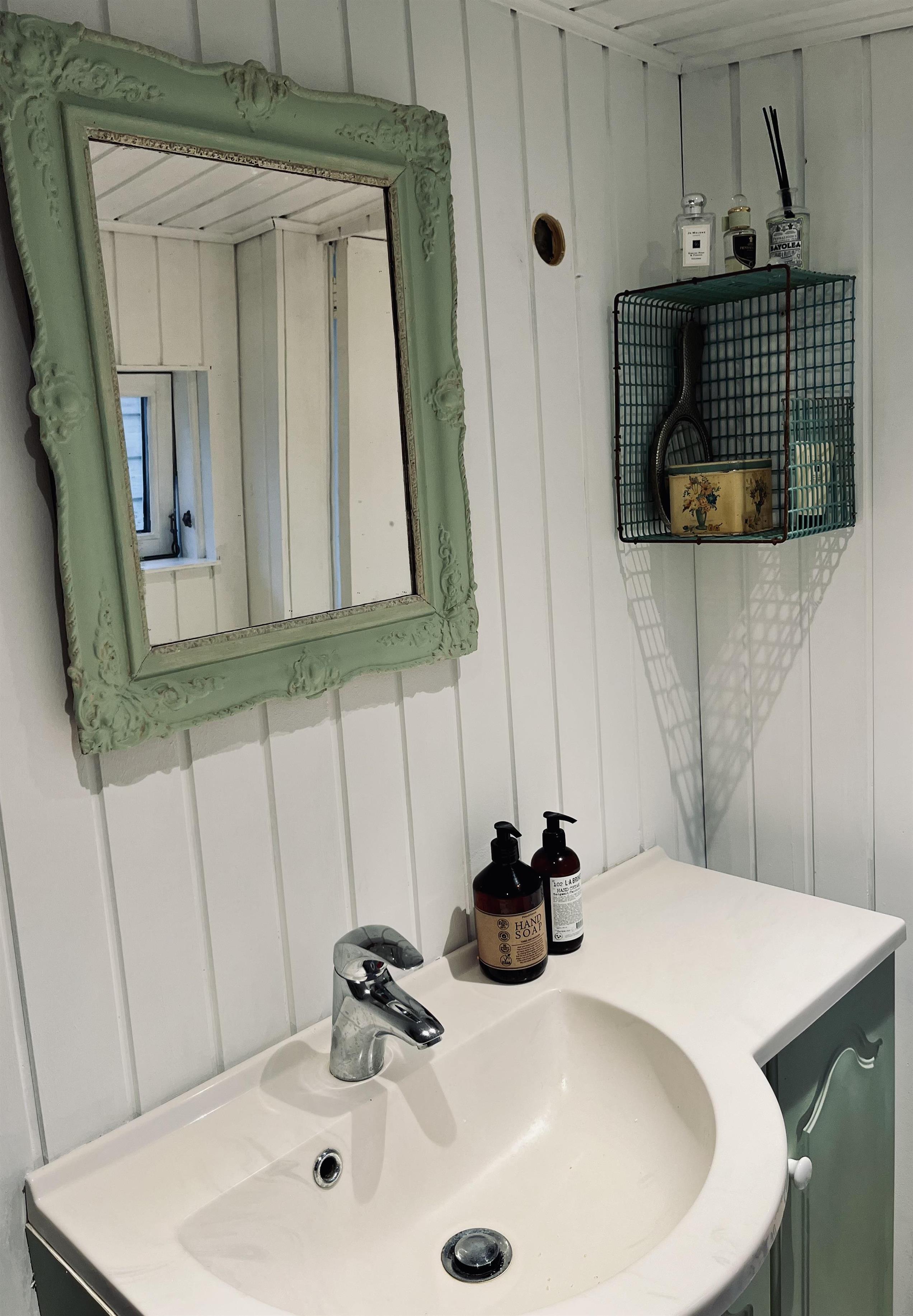 Huset er hyggeligt indrettet med stue med spiseplads og sofahjørne. Her er gratis internet og Chromecast-tv. Køkkenet er godt udstyret. Der er en mikroovn i det aflåste skur udenfor.