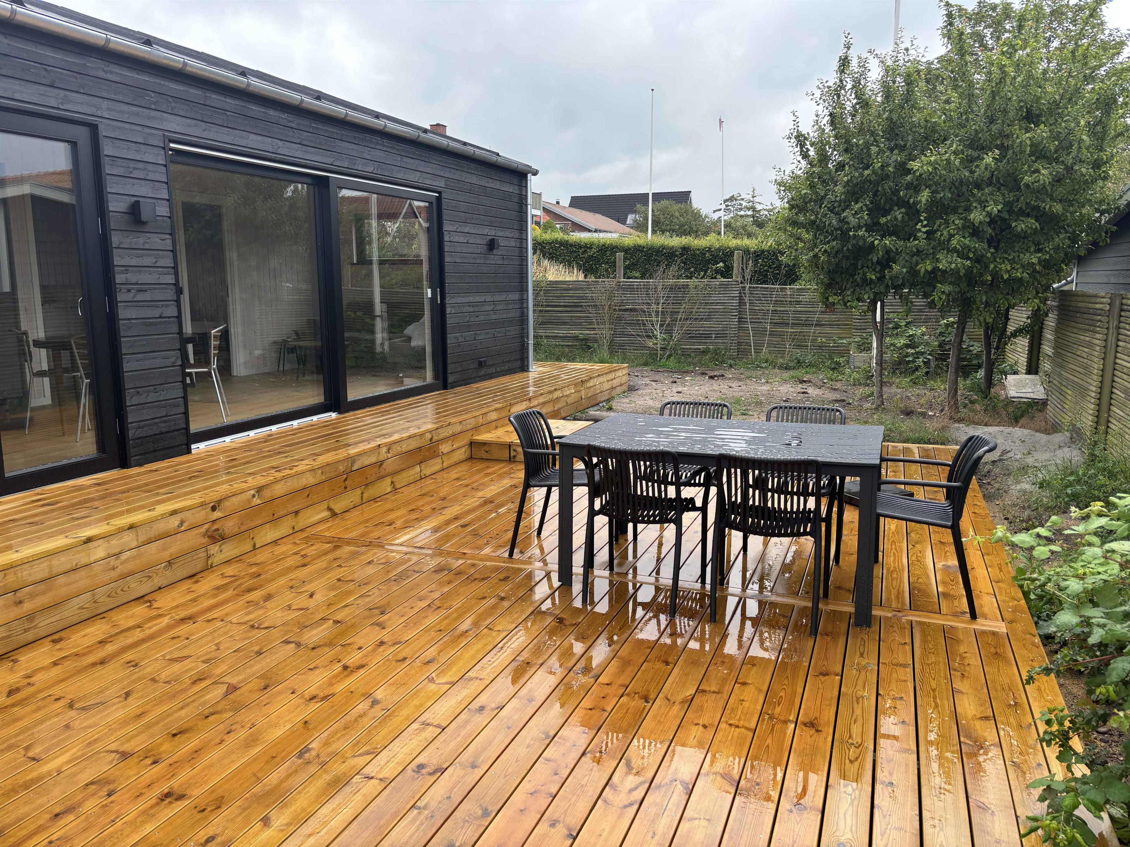 Charmerende nybygget sommerhus kun 300 m fra stranden i Karrebæksminde med stor sydvendt terrasse og moderne faciliteter.