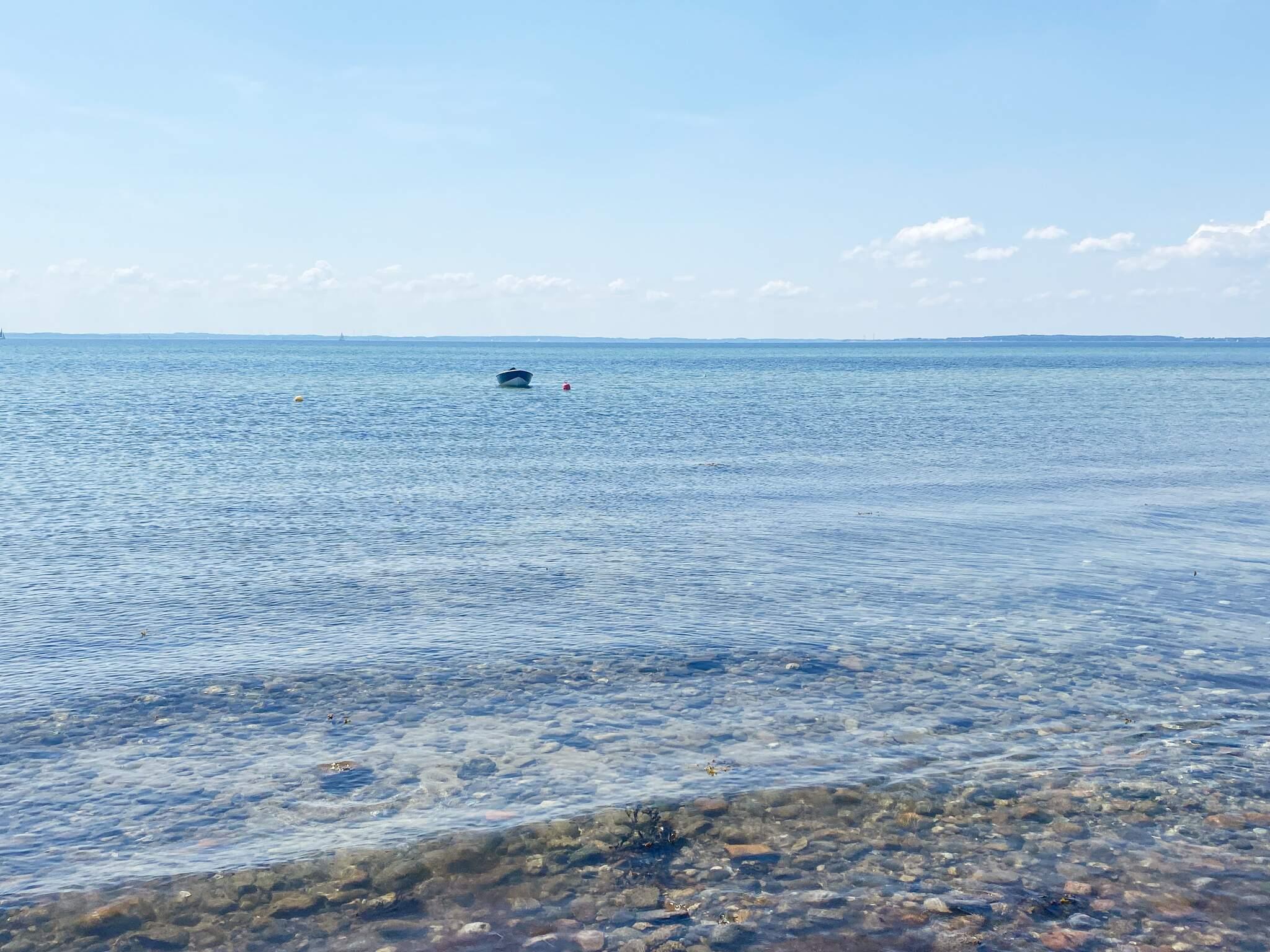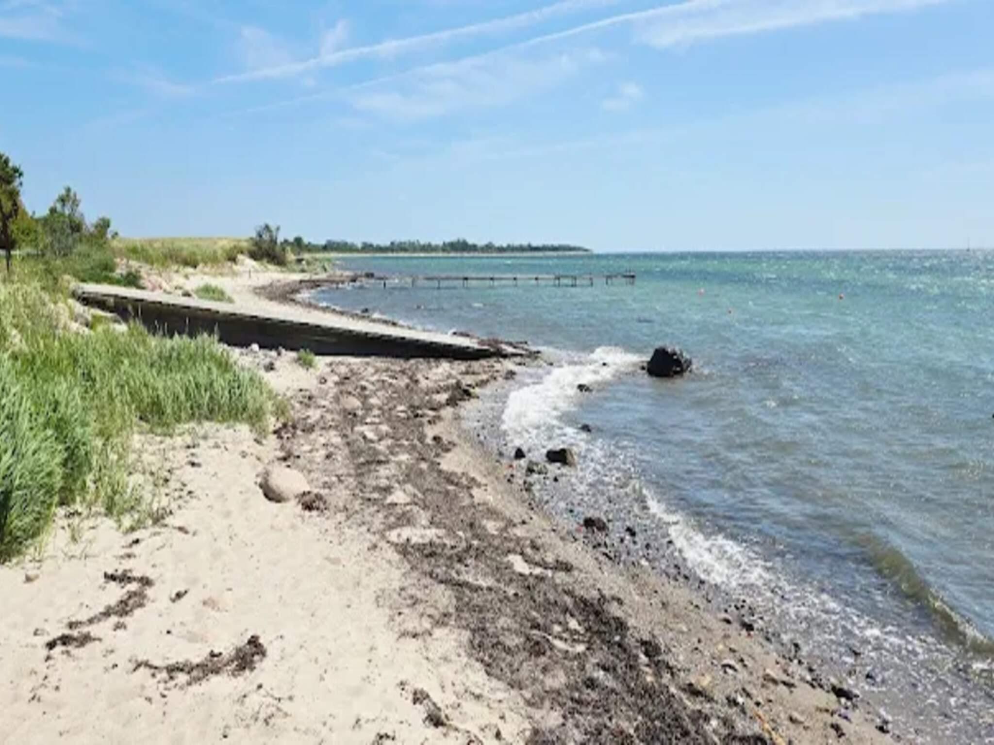 Stranden ligger kun ca. 300 meter fra huset og er ideel til både badning og fiskeri. I højsæsonen kan mindre fornødenheder købes på den nærliggende campingplads, mens nærmeste indkøbsmulighed findes i Skovby.