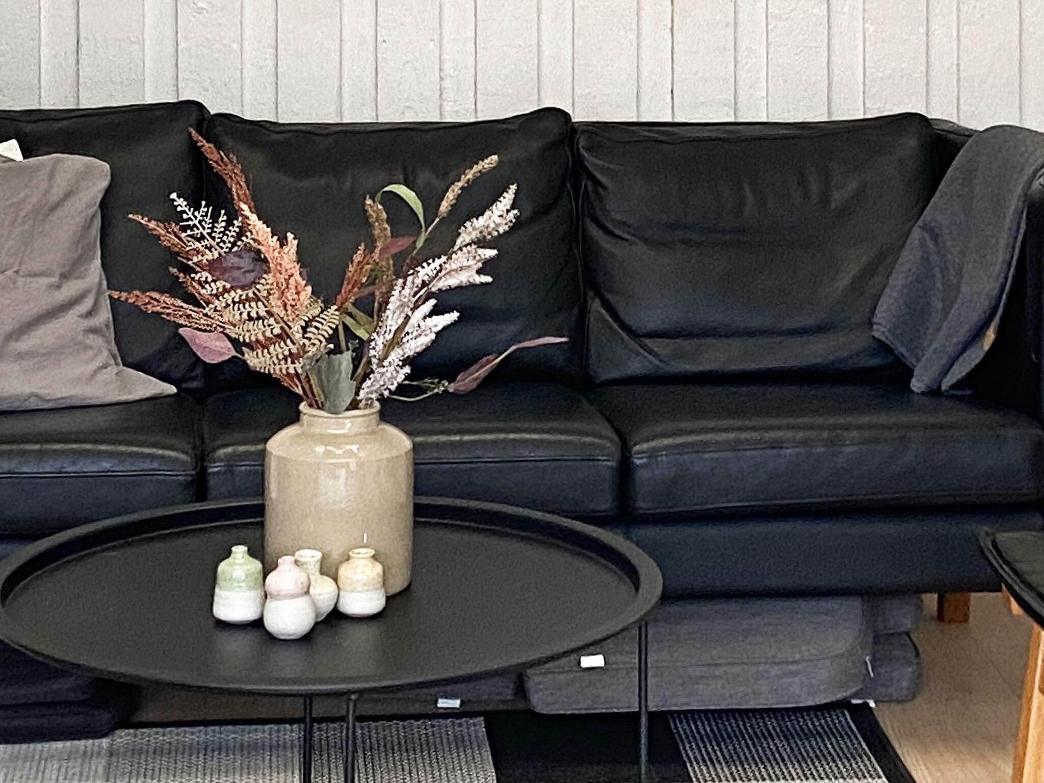 Huset har tre gode soveværelser og to badeværelser med bruser. Ved entréen findes desuden et hyggeligt hjørne, hvor man kan slappe af med en god bog eller en kop kaffe.