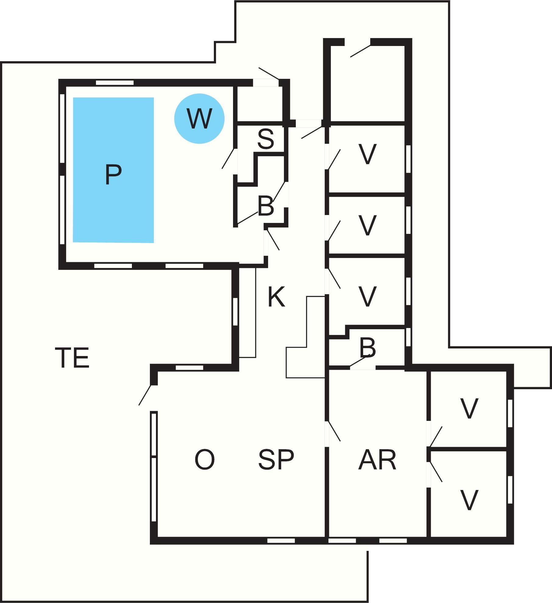 Ejendommens højdepunkt er det imponerende poolområde, hvor du kan nyde endeløse timers badning og afslapning. Det har en 16 m² stor swimmingpool med en sjov vandrutsjebane og modstrømssystem, samt et stort spabad til op til seks personer og en rummelig sauna. Dette gør det nemt at kombinere legetid i vandet med øjeblikke af ren wellness.