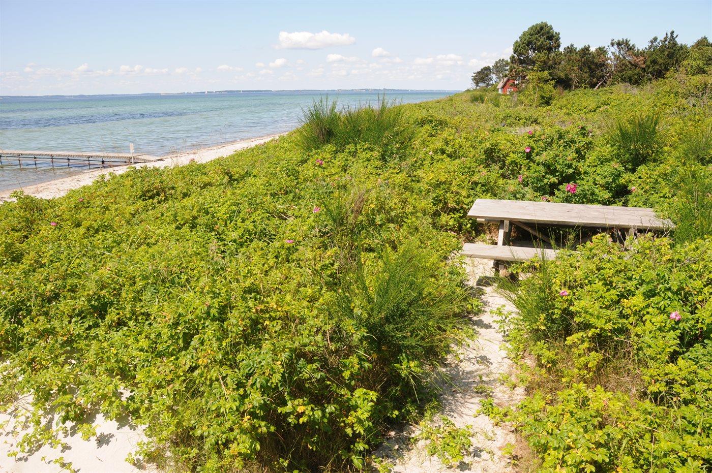 Ferieboligen er beliggende på en 1850 m² stor naturgrund. Der er 75 m til havet. Der er en badebro i nærheden. Nærmeste forretning er beliggende i en afstand af 500 m. Til ferieboligen hører 15 m² terrasseareal. Desuden er der 8 m² overdækket terrasse. Der er redskabsrum. Gynge. Vippe. Parkering ved ferieboligen.