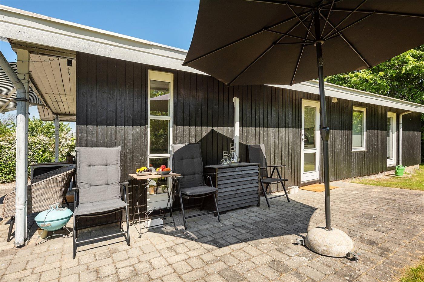 Ferieboligen er beliggende på en 900 m² stor naturgrund. Der er 300 m til havet. Nærmeste forretning er beliggende i en afstand af 7000 m. Til ferieboligen hører 50 m² terrasseareal. Grill til rådighed. Parkering ved ferieboligen.