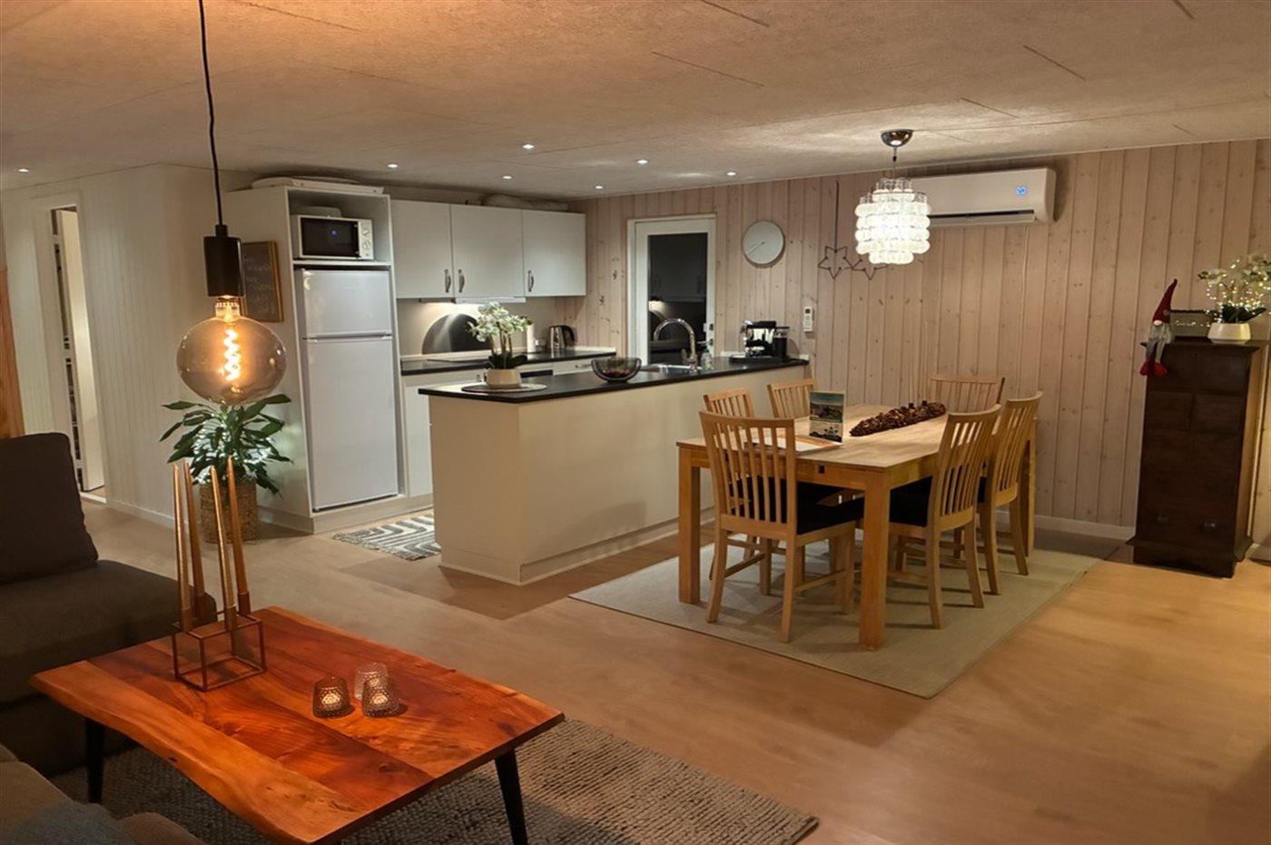 Køkkenet er udstyret med 1 køleskab. Der er 4 keramiske kogeplader, varmluftovn, mikrobølgeovn samt opvaskemaskine.