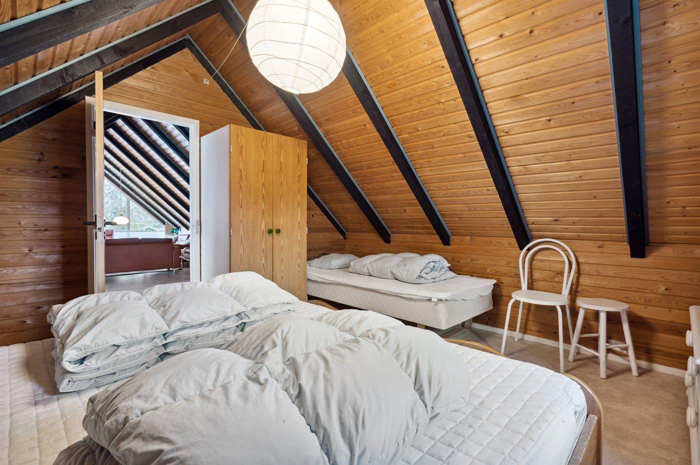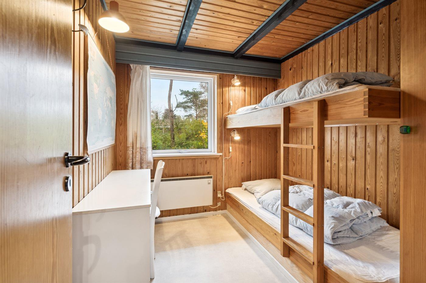 Der er i alt 3 soveværelser. Sovepladserne fordeler sig på: 2 sovepladser i dobbeltseng. 4 sovepladser i køjesenge. Derudover er der 1 stk. barneseng.