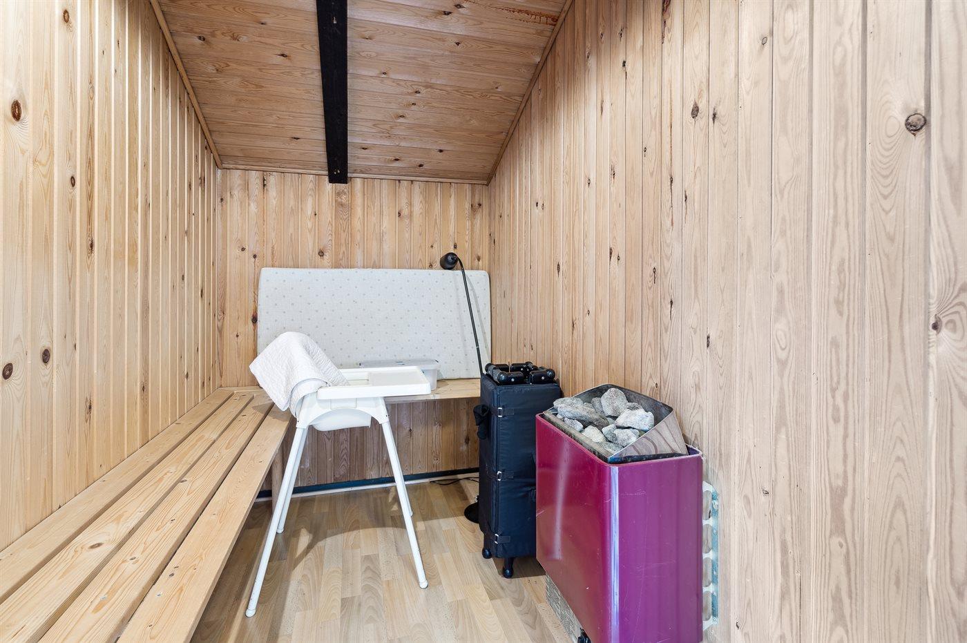 Der er 1 badeværelse med bruseniche og 1 toilet. I saunaen er der mulighed for afslapning.