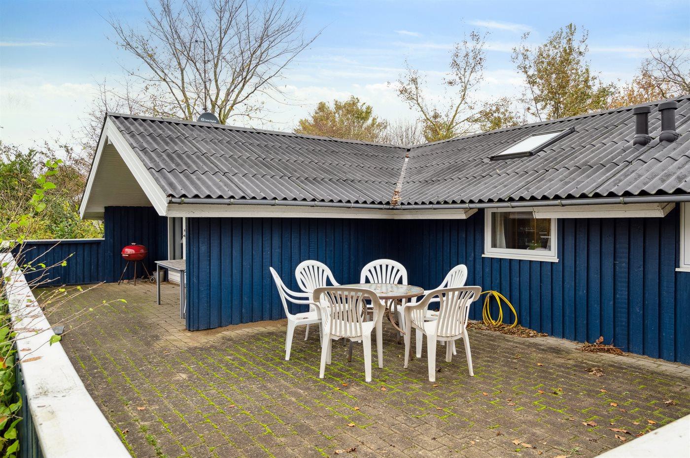 Ferieboligen er beliggende på en 800 m² stor havegrund. Der er 150 m til havet. Nærmeste forretning er beliggende i en afstand af 8000 m. Til ferieboligen hører åbent, til dels overdækket og lukket terrasseareal. Grill til rådighed. Parkering ved ferieboligen.