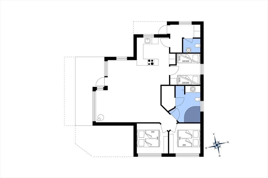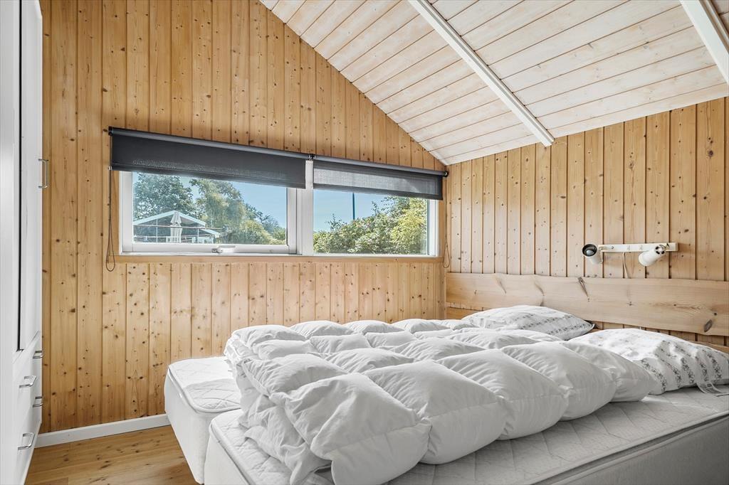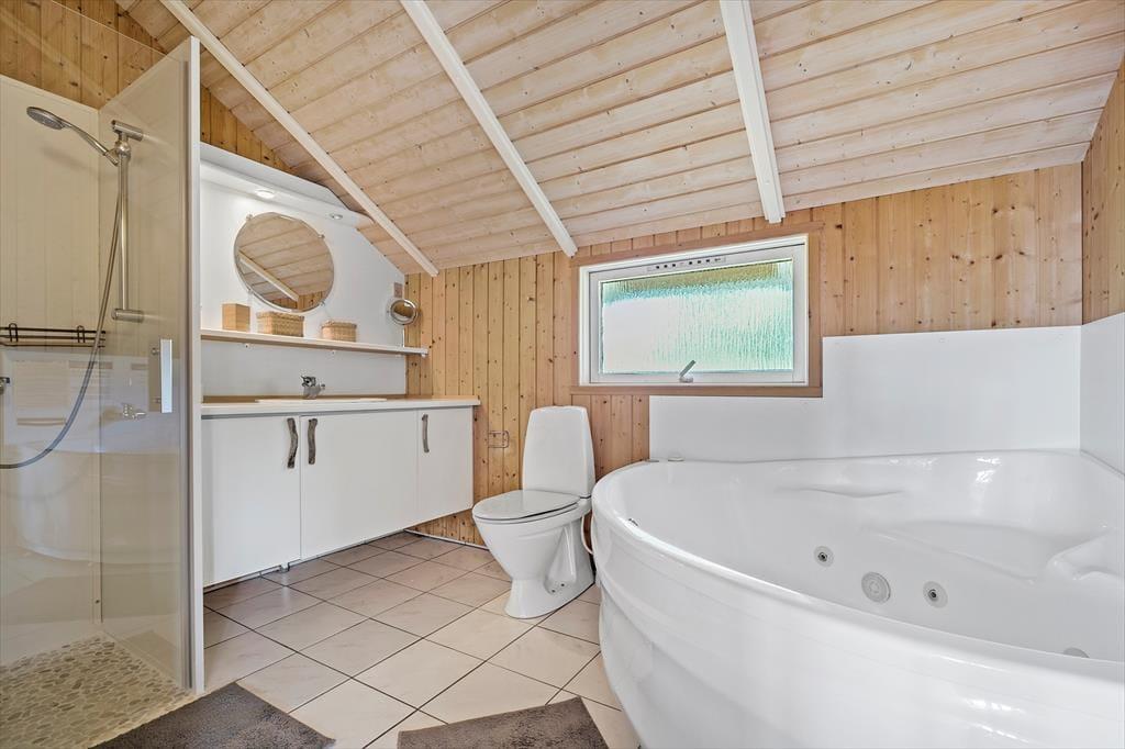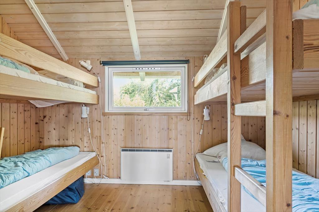 Velindrettet feriehus indeholdende en entré med vaskemaskine og tørretumbler, et værelse med to køjesenge, et køkken i åben forbindelse med stuen. I stuen er der brændeovn, spiseplads og udgang til terrassen. Derudover er der et badeværelse med spabad og sauna, et gæstetoilet, samt to soveværelser med en dobbeltseng i hver.
