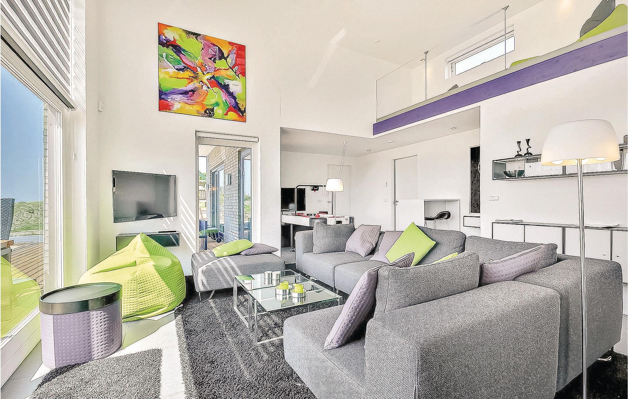 Allerede når I ankommer til huset, mærker I, at I er kommet til noget særligt. Her er der kræset for detaljerne og beliggenheden er hel unik med fuld panorama over havet. Huset er opført i moderne stil og design, som simpelthen skal opleves. Boligen indeholder bl.a. en stor, hyggelig opholdsstue i åben forbindelse til køkkenet, hvor pejsen giver den rette stemning. Soveværelserne har elevationssenge og fra master bedroom er der adgang til eget badeværelse. Hertil kommer et stort badeværelse med spa og sauna. På den store grund kan I kan boltre jer, og når I kommer fra en dukkert i havet, kan I skylle jer under den udendørs bruser. Der er en stor delvis overdækket terrasse, hvor I både kan nyde solen og skyggen samt hygge jer omkring grillen.