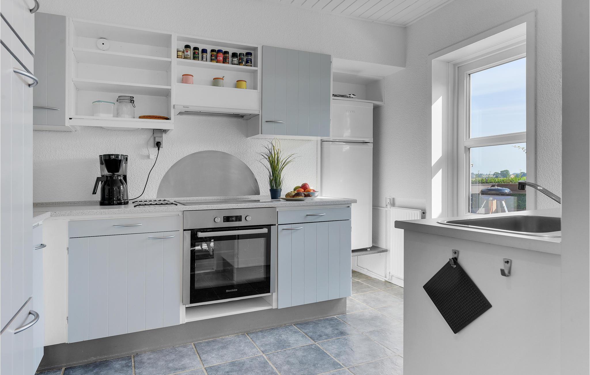 På den dejlige halvø Kegnæs, som byder på en familievenlig sandstrand og gode fiskemuligheder ligger dette pragtfulde feriehus lige ned til stranden. Fra huset og terrasserne er der en fantastisk udsigt over havet. Stedet er desuden et paradis for windsurfere. I haven er der en dejlig lys terrasse, ligesom der også er en terrasse på første sal med en fantastisk udsigt over vandet. I huset er der alle moderne bekvemmeligheder til rådighed såvel i køkkenet og stuen som i det veludstyrede badeværelse, der er indrettet med spabad og sauna. Huset er velegnet til to familier.