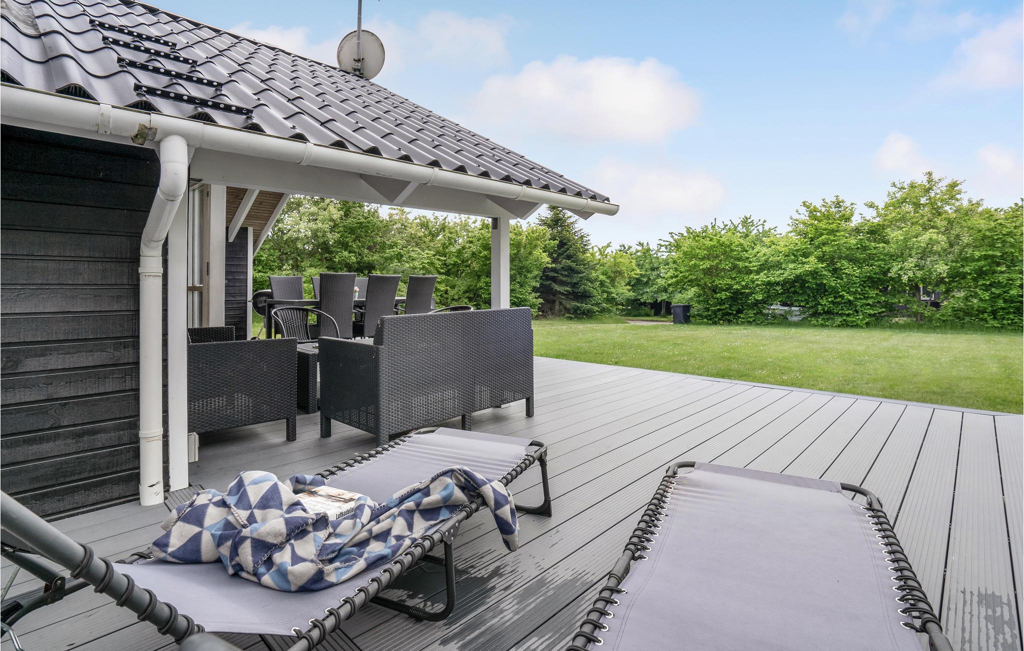 Huset har en lækker, rummelig terrasse til flere sider, så her kan I finde sol og skygge efter forgodtbefindende. Huset er indkranset af en rummelig have, hvor I kan tage en gang dåseskjul eller et slag kongespil med børnene. På grillen kan I tilberede en lækker aftensmad, som I kan nyde udendørs på de magiske sommeraftener.