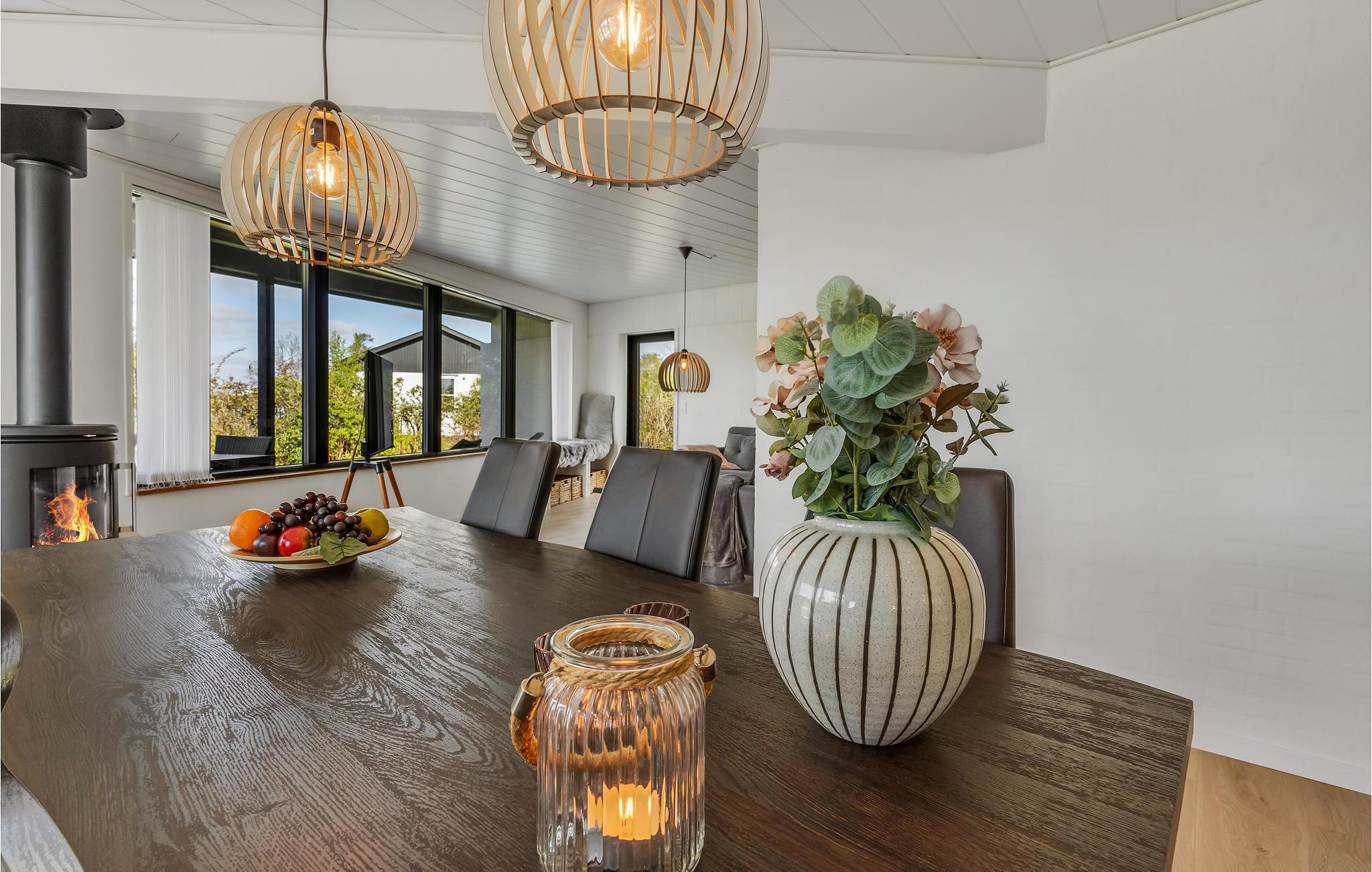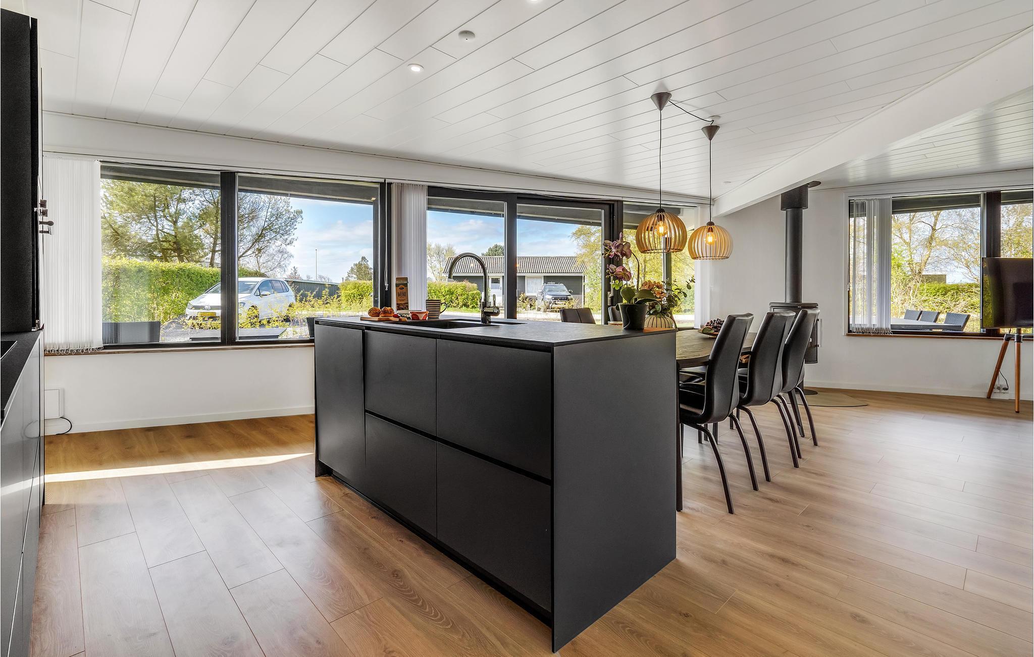 På halvøen Kegnæs venter en uforglemmelig ferie i dette smukke hus. Ferieresidensen er det perfekte valg for dem, der sætter pris på høj komfort og en beliggenhed nær stranden. I kommer på ingen måde til at savne noget, for huset er meget komfortabelt indrettet og tilbyder gode faciliteter. De store vinduer sørger for et skønt lysindfald i rummene og en beroligende atmosfære. Tryl jeres yndlingsretter frem i det moderne og åbne køkken og slap af på sofaen om aftenen til en god film.