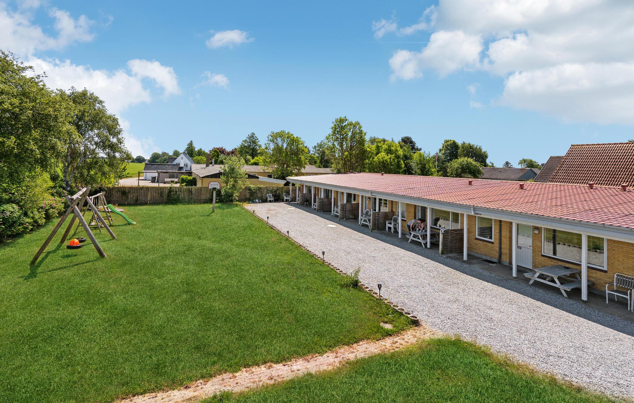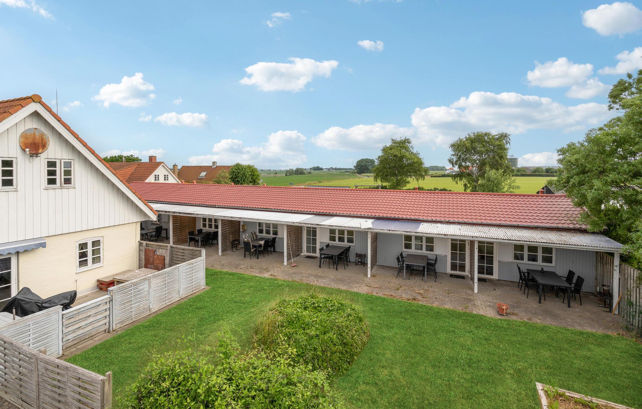 Terrassen foran huset lægger op til hyggestunder – hvad enten det er med en kop kaffe om morgenen eller en hyggelig grillmiddag med familien. Nyd den friske luft, og afslut dagen komfortabelt med et glas vin og en stimulerende samtale. For de yngre gæster er der en gynge, en rutsjebane og en basketballkurv lige ved siden af huset – så selv børnene ikke keder sig.