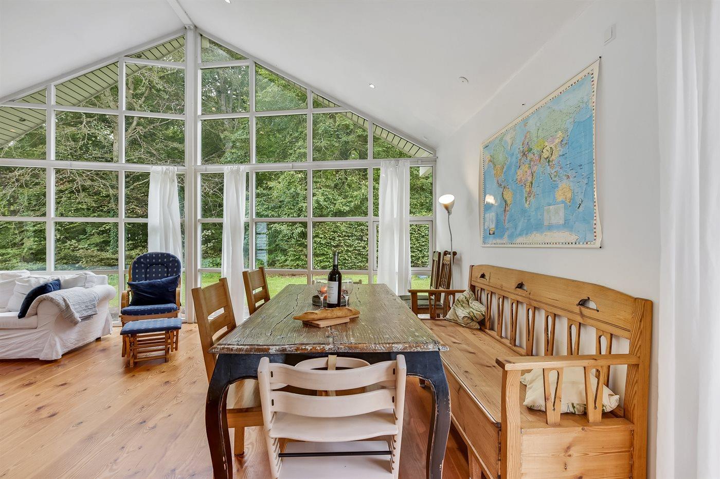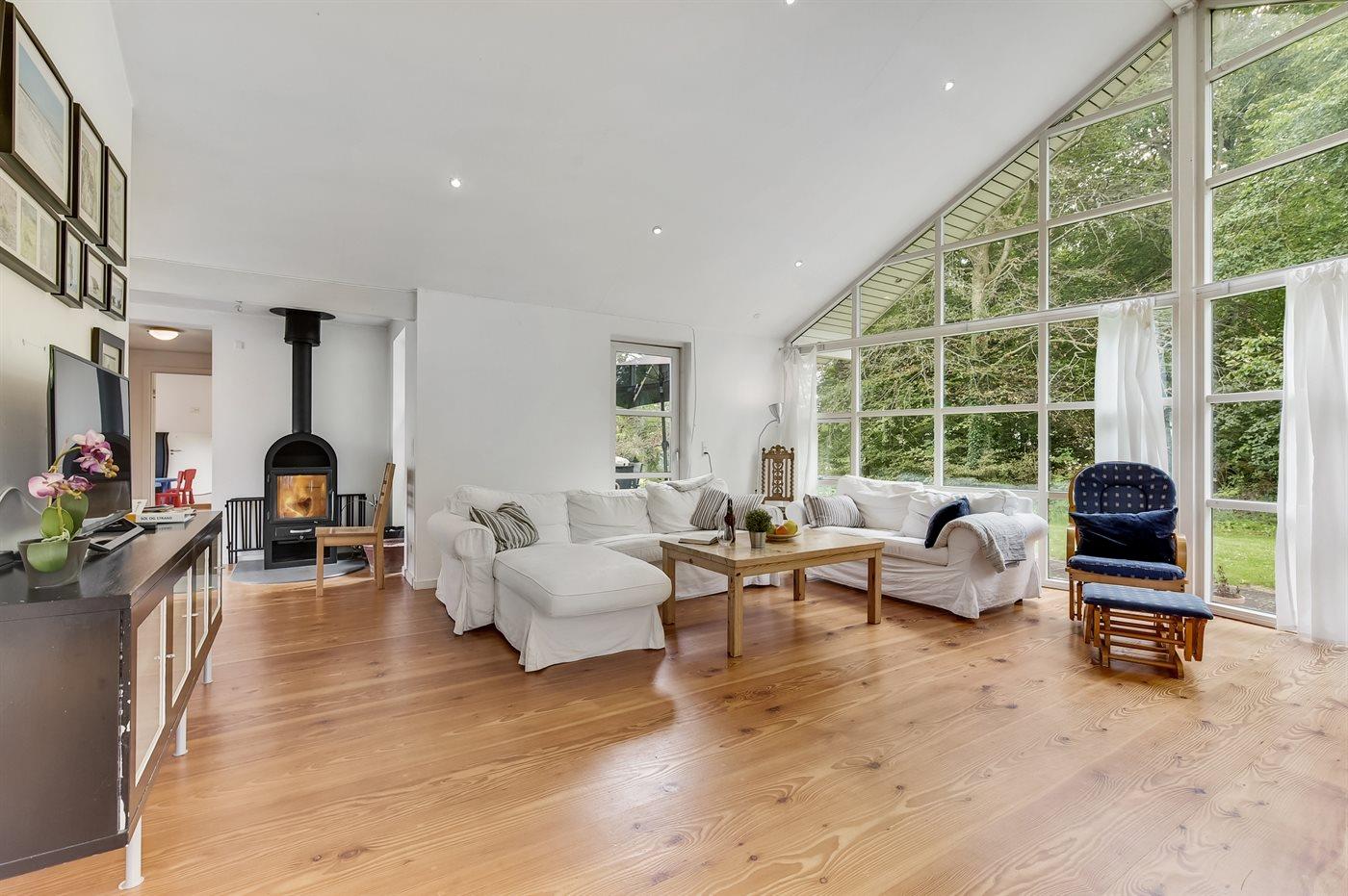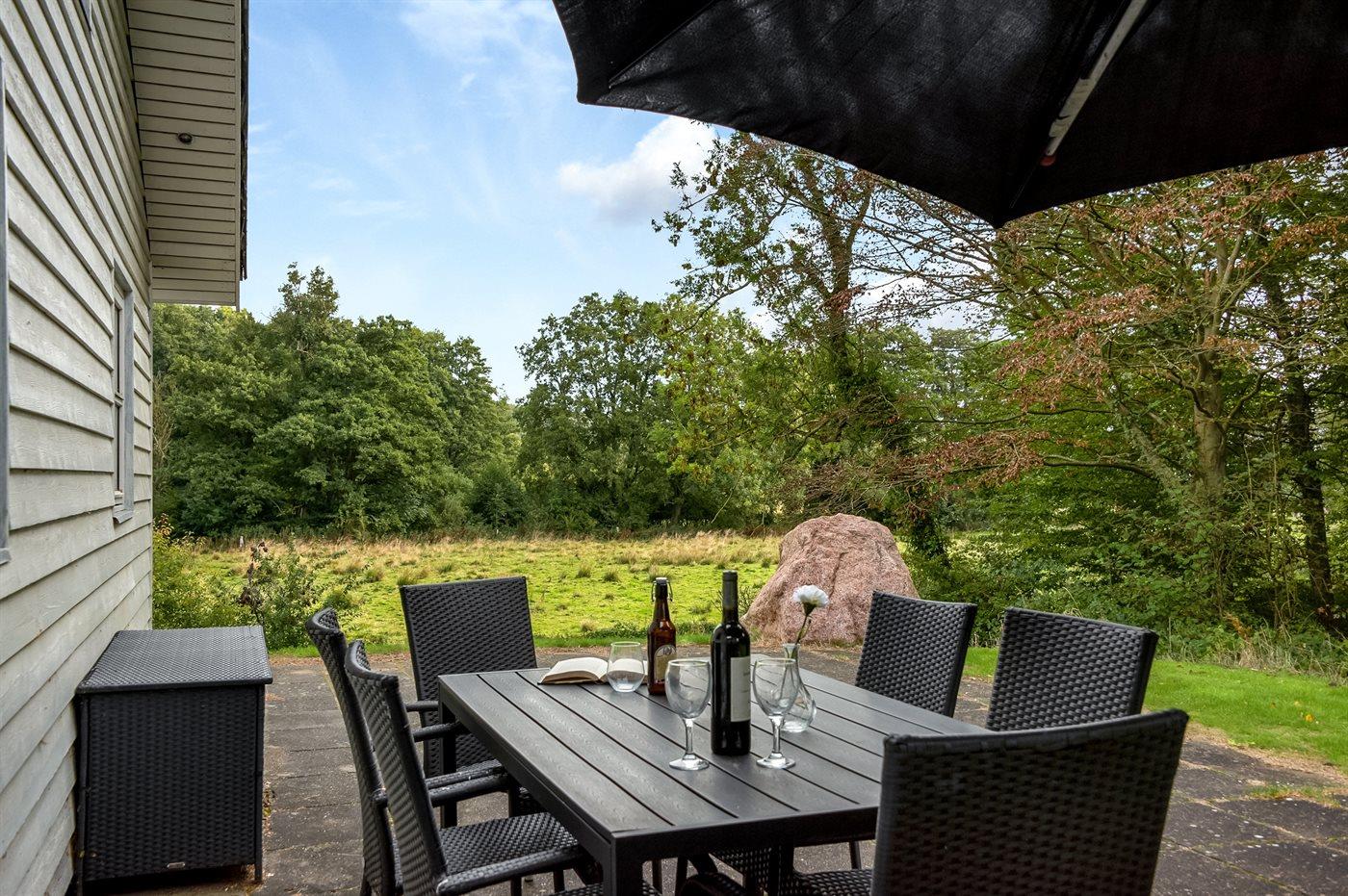 Rummeligt sommerhus i naturskønt område tæt på strand og skov med stor terrasse og bålplads.