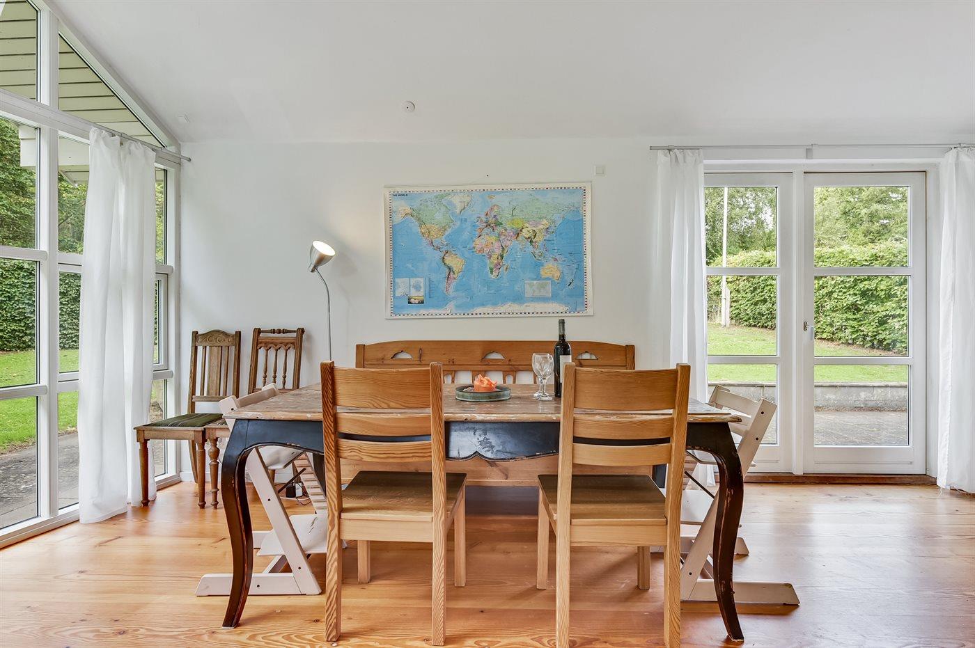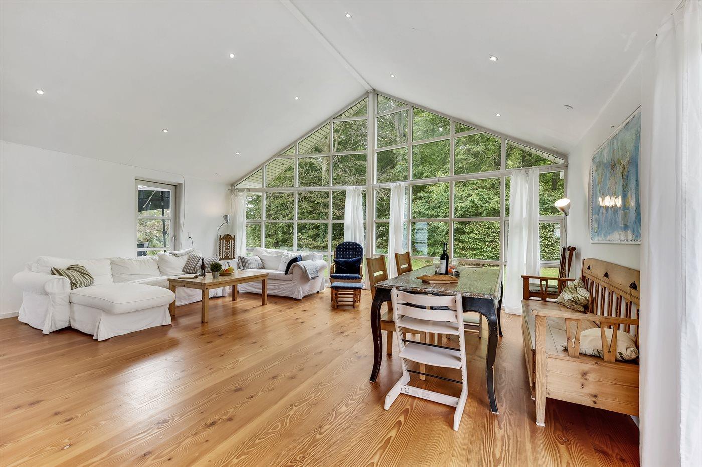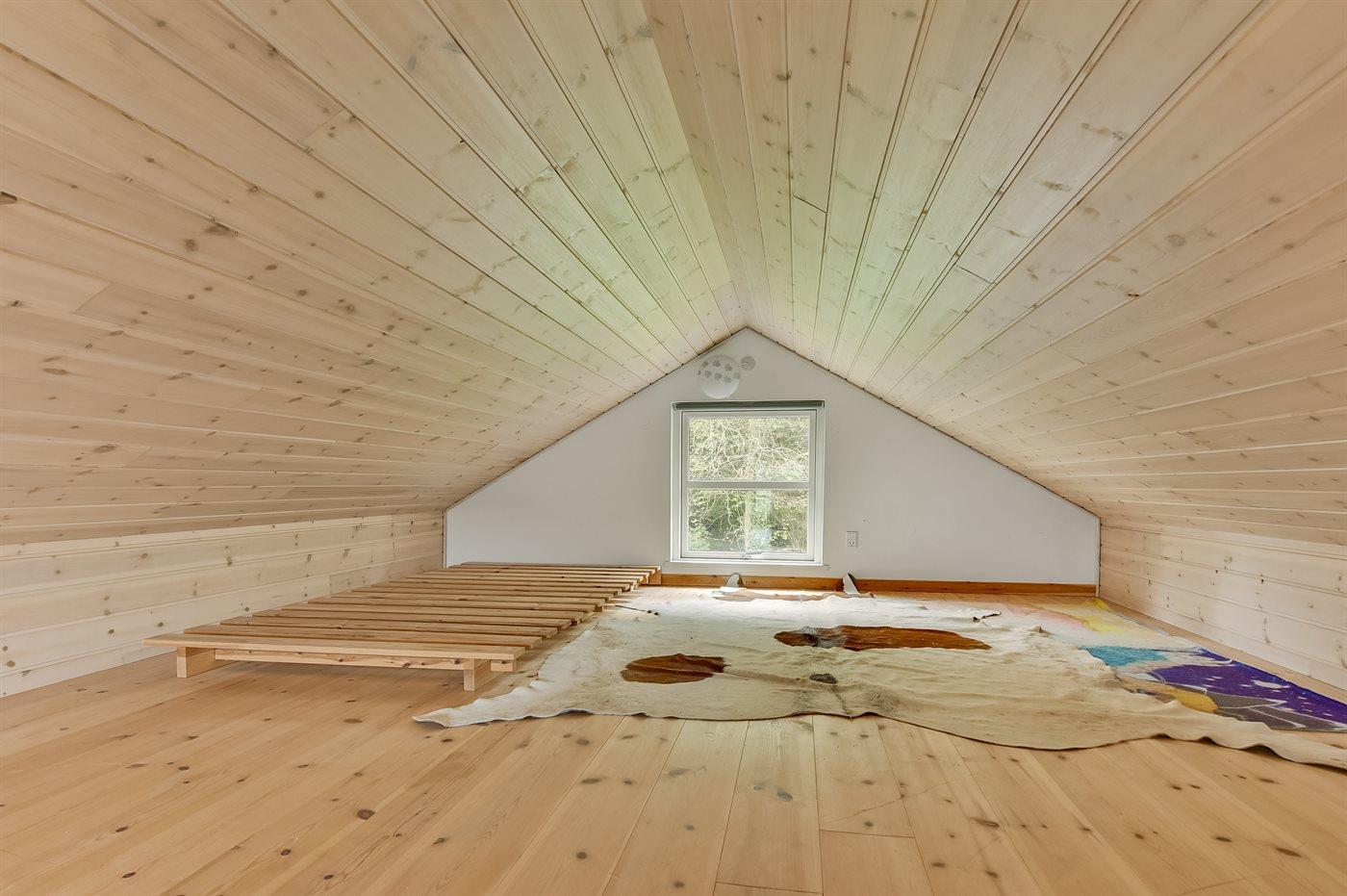 Stort og rummeligt sommerhus beliggende for enden af blind vej på en delvis lukket og kuperet grund ud til skov og åbne naturarealer. Huset er indrettet lyst med et meget stort vinduesparti fra gulv til loft i opholdsstuen og med adgang til hems. Det rolige og naturskønne område ligger tæt på vandet og skøn badestrand samt lige op til Hejsager Skov.