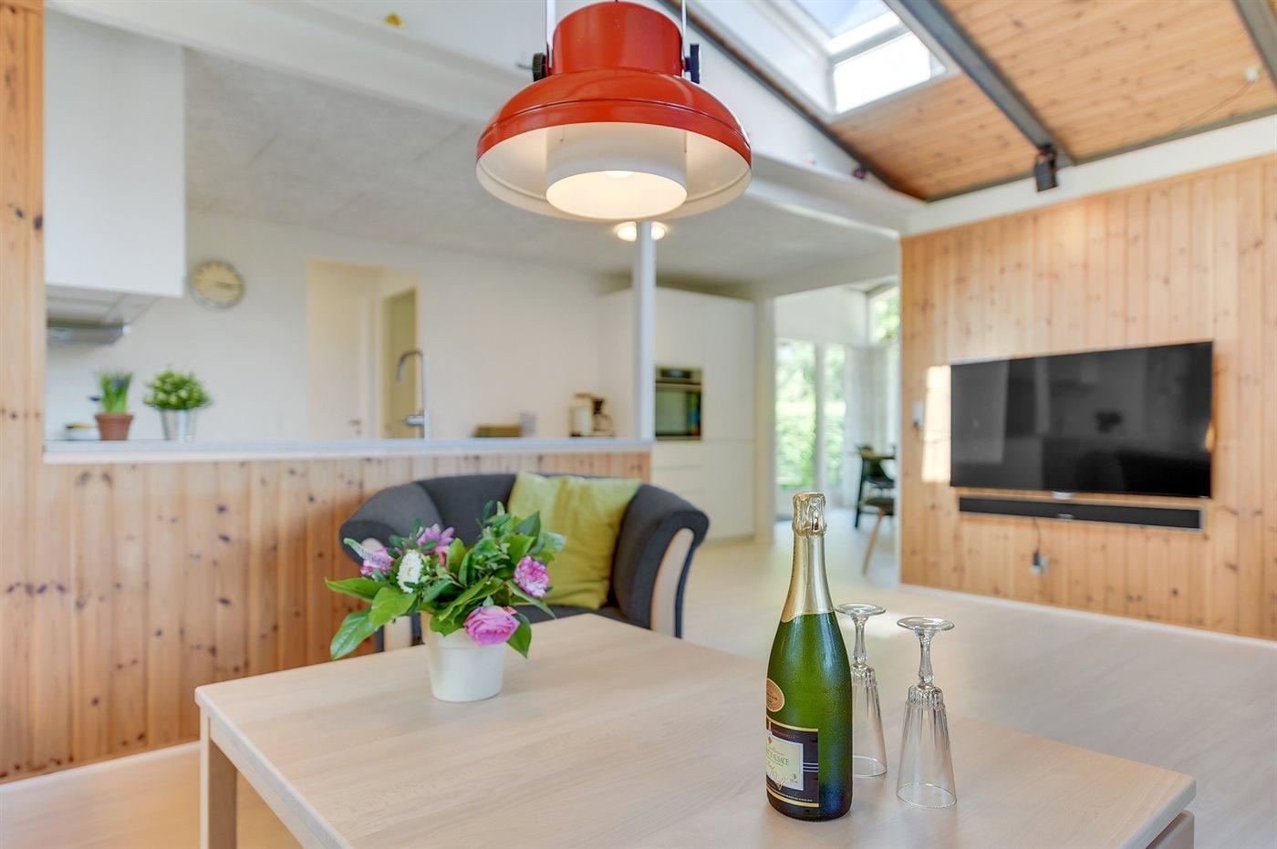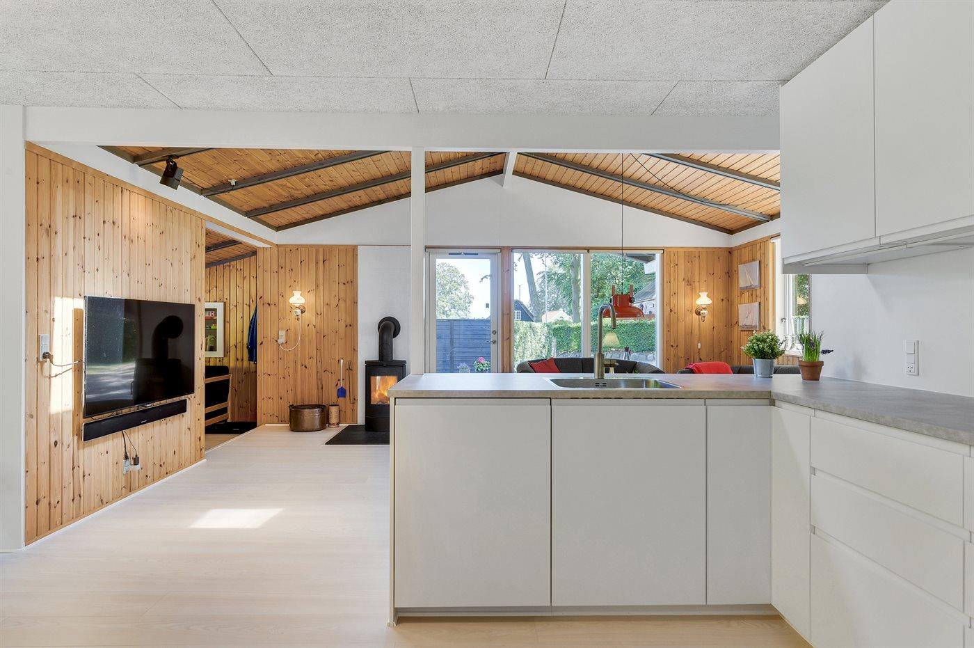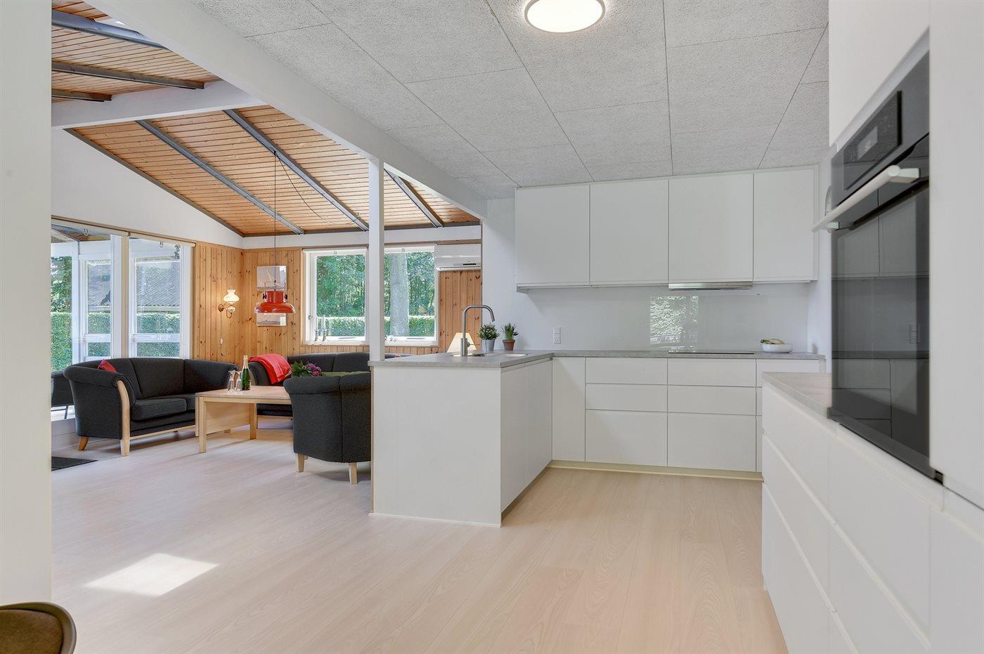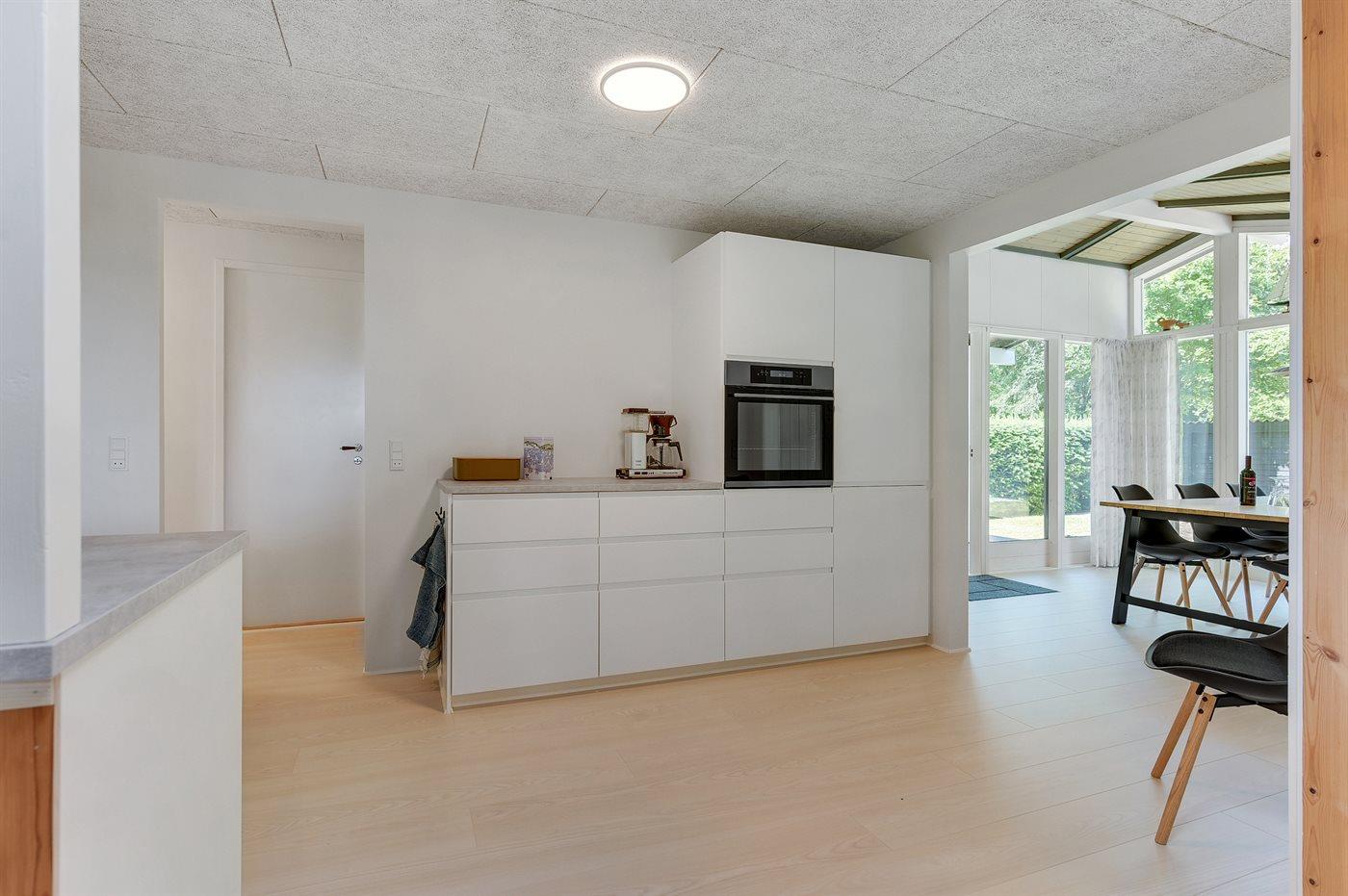 Køkkenet er udstyret med 1 køleskab. Der er 4 keramiske kogeplader, varmluftovn, mikrobølgeovn samt opvaskemaskine.
