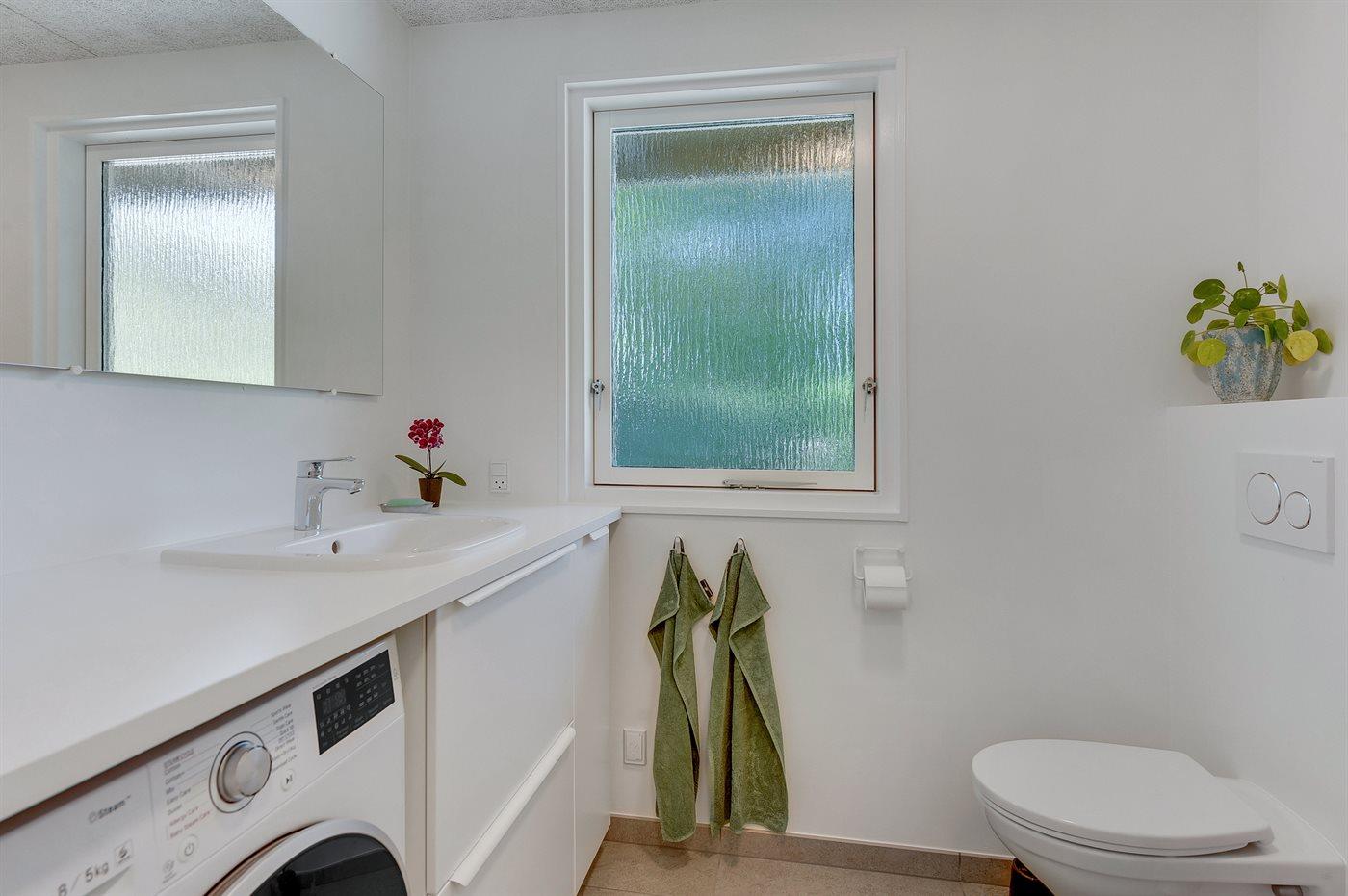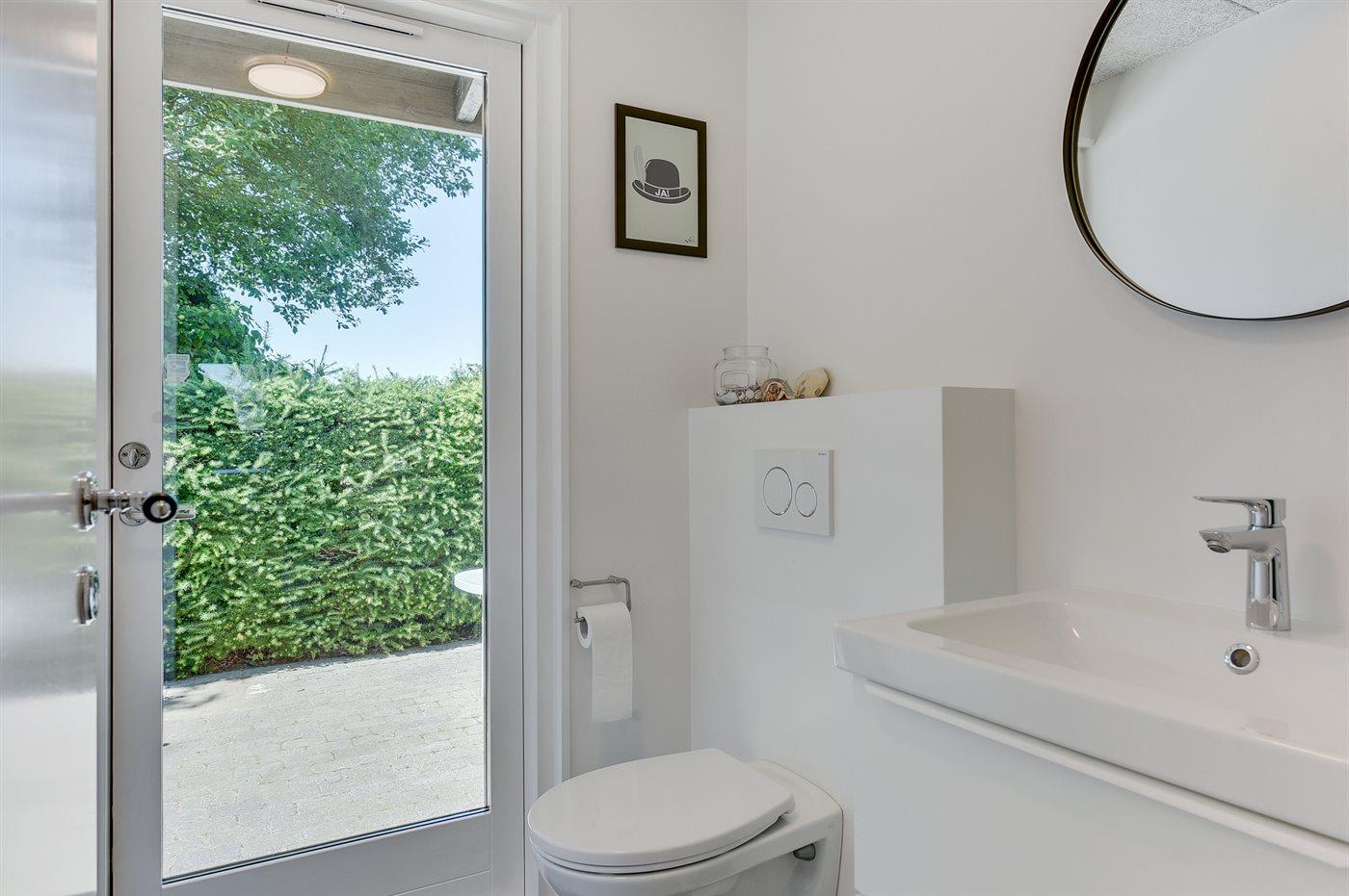 Der er 1 badeværelse med bruseniche og 2 toiletter, heraf 1 gæstetoilet. Der er gulvvarme på 1 badeværelse. Der er gulvvarme på gæstetoilettet.