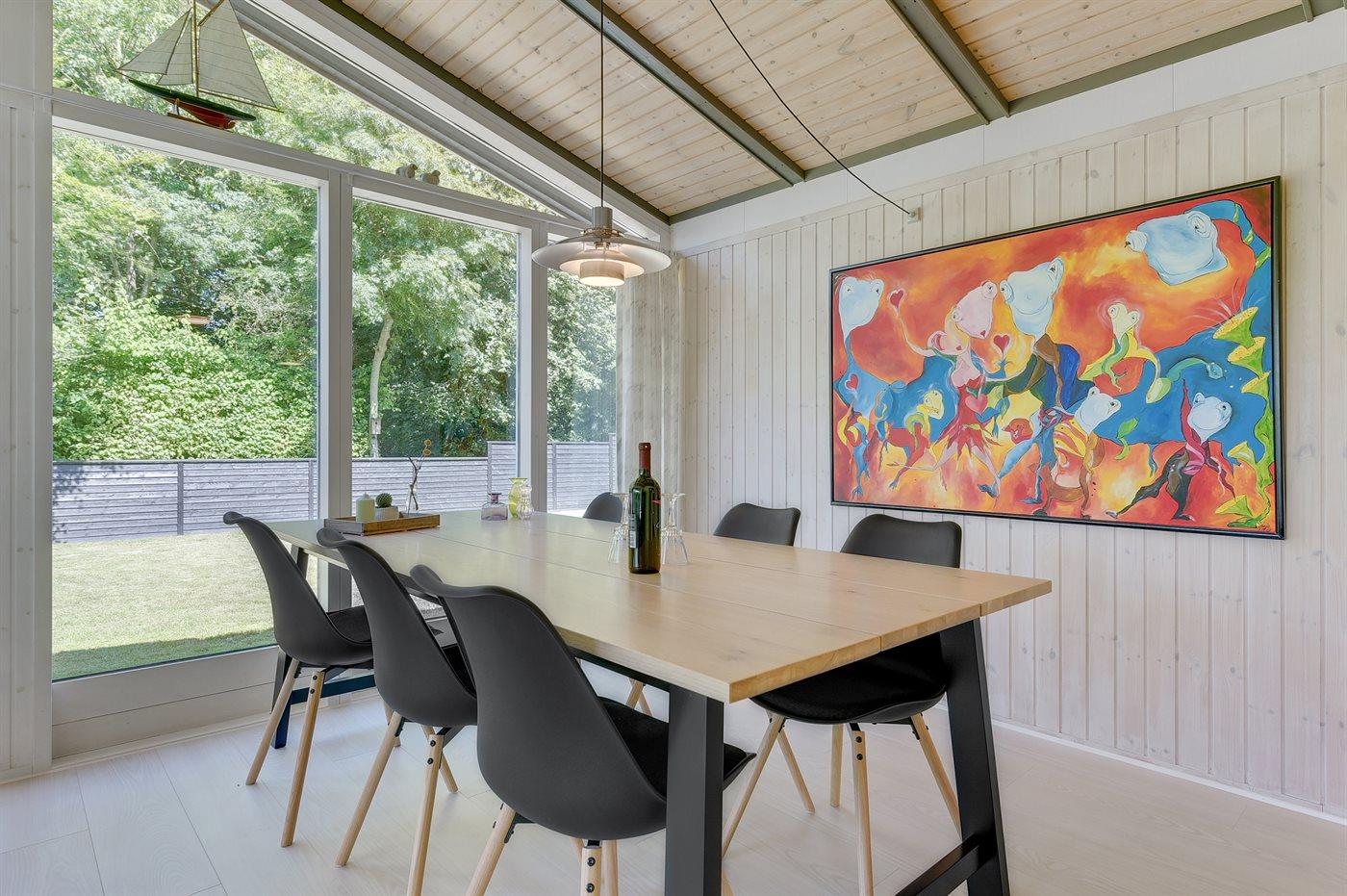 Sommerhuset egner sig til 6 personer samt 1 barn op til 3 år. Ferieboligen er på 90 m² og er bygget i 1988. I 2019 gennemgik ferieboligen en delvis renovering. Det er ikke tilladt at medbringe husdyr. Ferieboligen er udstyret med energibesparende varmepumpe. Ferieboligen har kombineret vaskemaskine og tørretumbler. Frysekapacitet på 60 liter. Der er desuden brændeovn. Til de små er der 1 stk. barnestol.