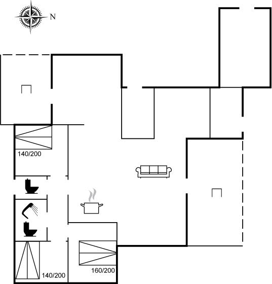 Der er i alt 3 soveværelser. Sovepladserne fordeler sig på: 6 sovepladser i dobbeltsenge. Derudover er der 1 stk. barneseng.