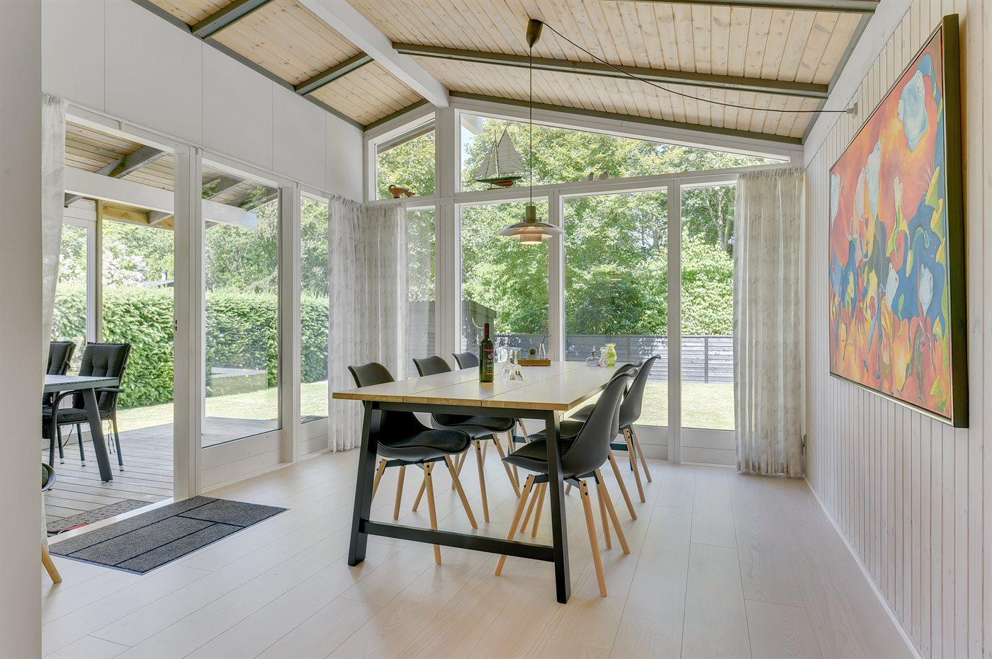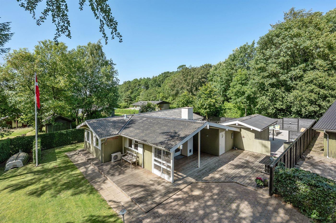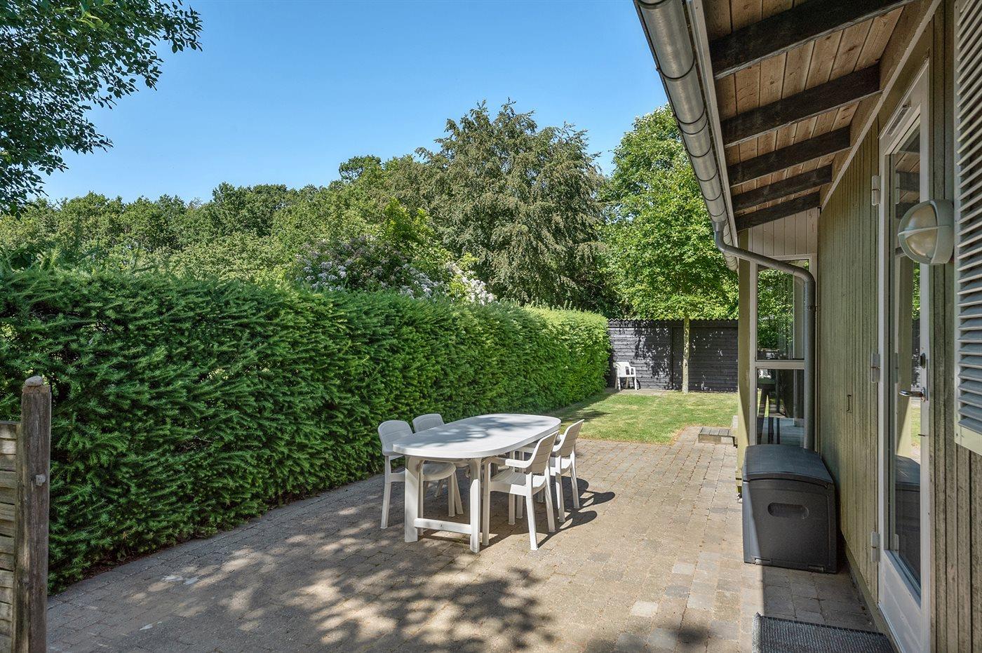 Skønt sommerhus beliggende tilbagetrukket med dejlig ugenert have, hvor der findes flere forskellige terrasser med mulighed for at nyde vejret og haven. Området byder på fred og ro samt skøn natur med god badestrand i gåafstand fra huset.