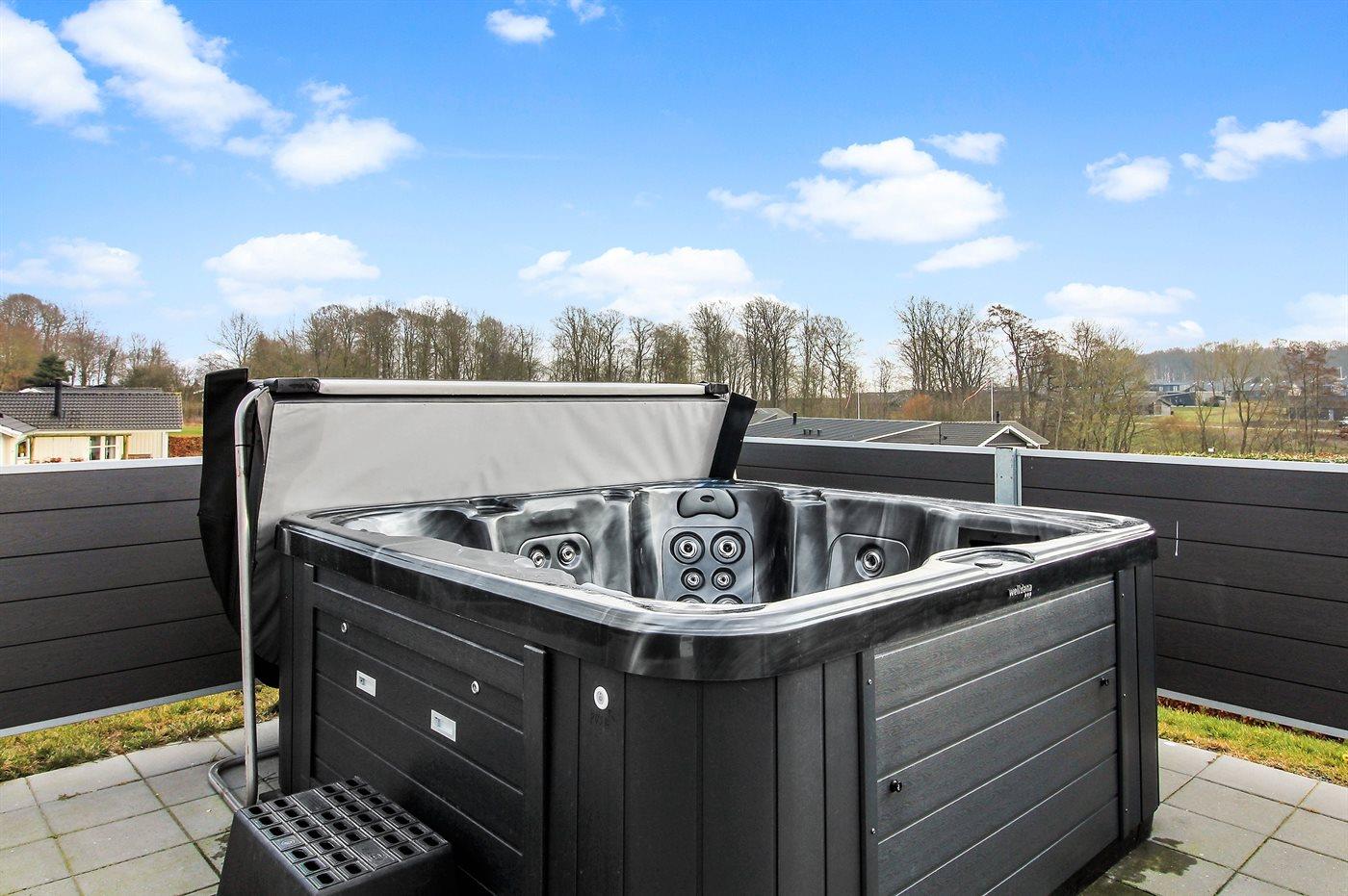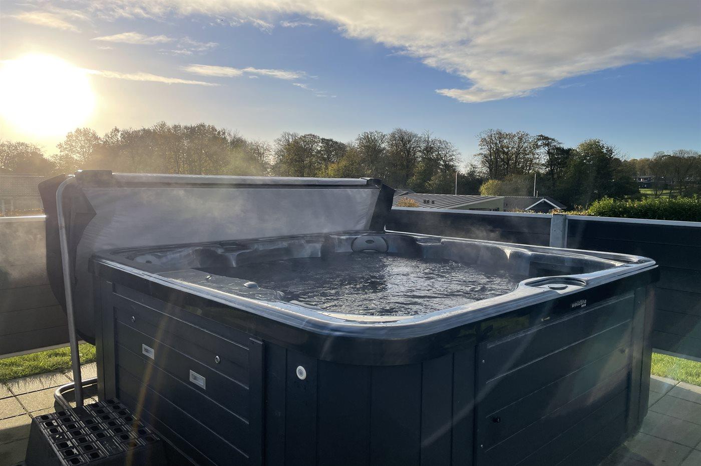 Der er mulighed for afslapning i udendørs standvandsspa til 5 personer.