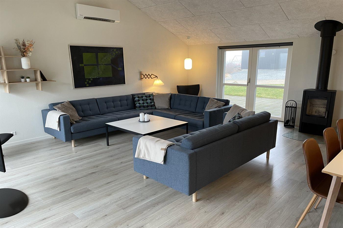 Sommerhuset egner sig til 10 personer samt 1 barn op til 3 år. Ferieboligen er på 150 m² og er bygget i 2019. Det er tilladt at medbringe 2 husdyr. Ferieboligen er udstyret med energibesparende varmepumpe. Ferieboligen har vaskemaskine. Tørretumbler. Frysekapacitet på 90 liter. Der er desuden brændeovn. Til de små er der 1 stk. barnestol.