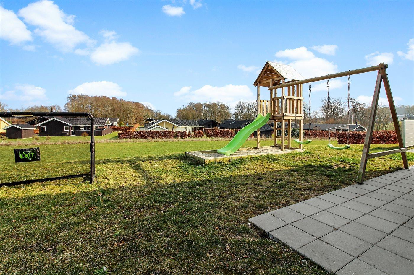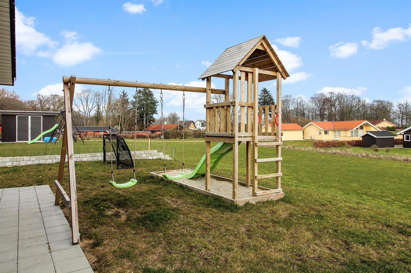 Ferieboligen er beliggende på en 783 m² stor havegrund. Der er 300 m til havet. Der er en badebro i nærheden. Nærmeste forretning er beliggende i en afstand af 8000 m. Der er en golfbane i en afstand af 12000 m. Til ferieboligen hører 75 m² terrasseareal. Gynge. Sandkasse. Legetårn. Rutchebane. Fodboldmål. Grill til rådighed. Parkering ved ferieboligen.