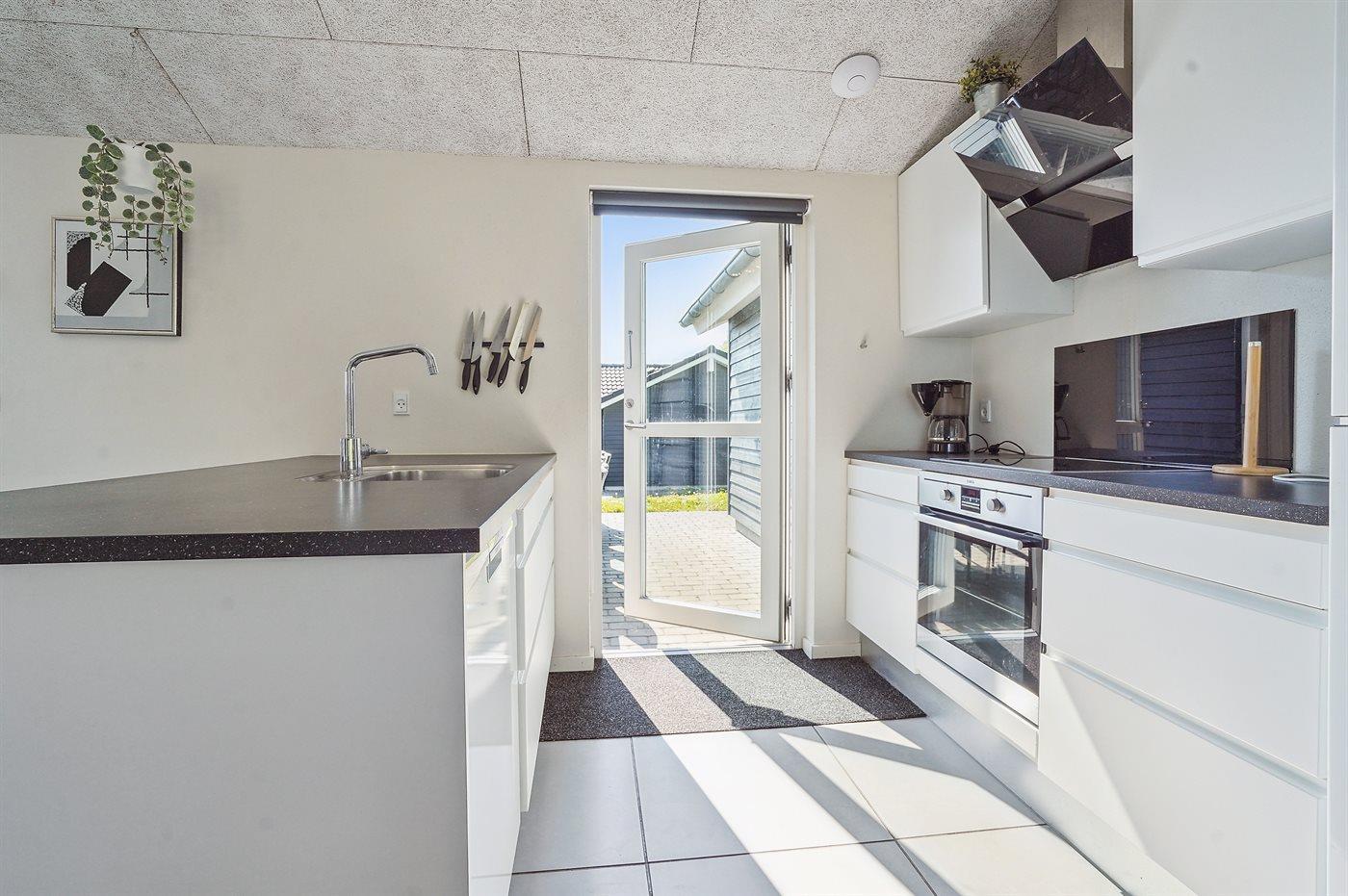 Køkkenet er udstyret med 1 køleskab. Der er 4 keramiske kogeplader, varmluftovn, mikrobølgeovn samt opvaskemaskine.
