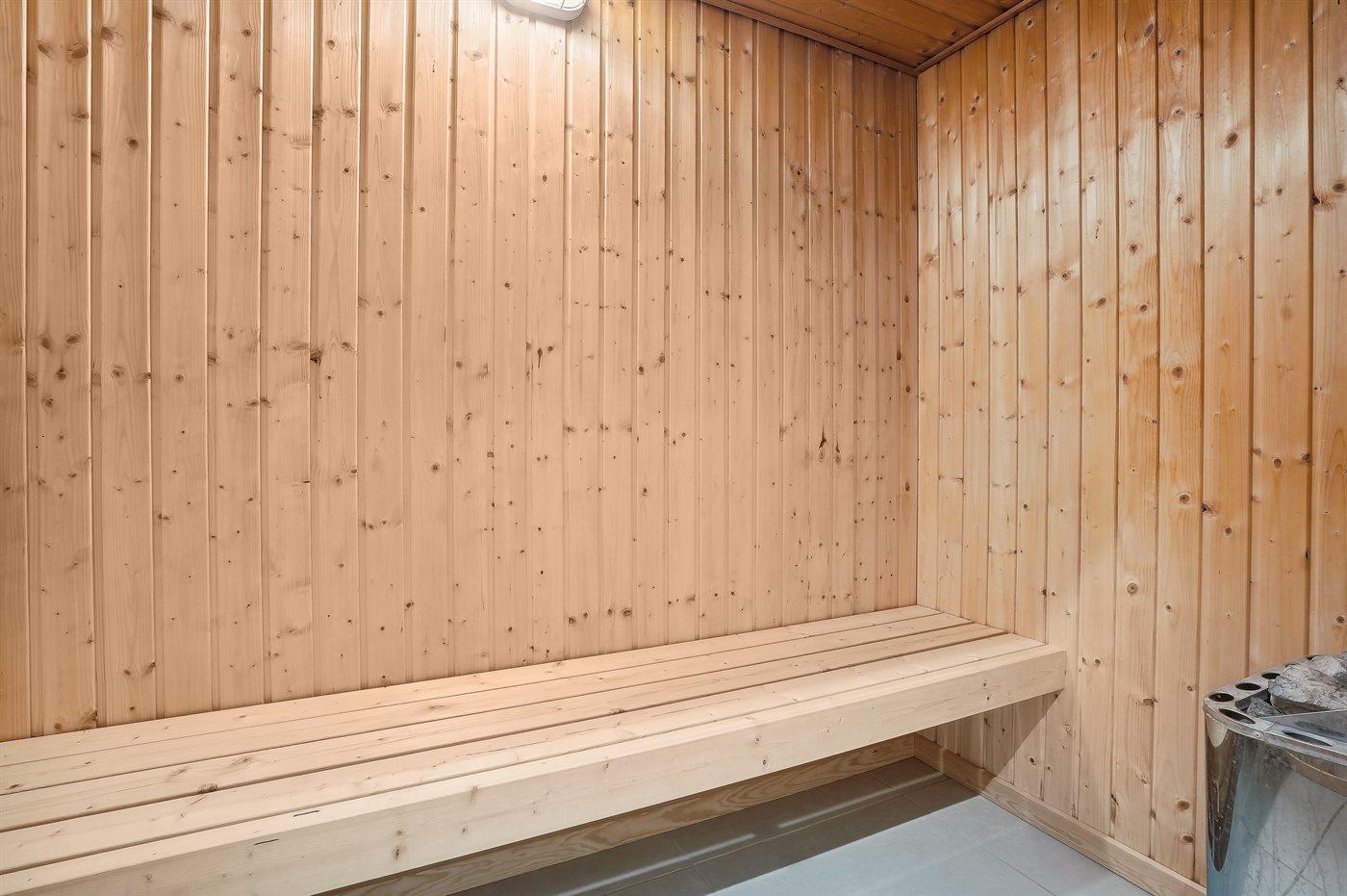 Der er 2 badeværelser med bruseniche og 2 toiletter. Der er gulvvarme på 2 badeværelser. I saunaen er der mulighed for afslapning.
