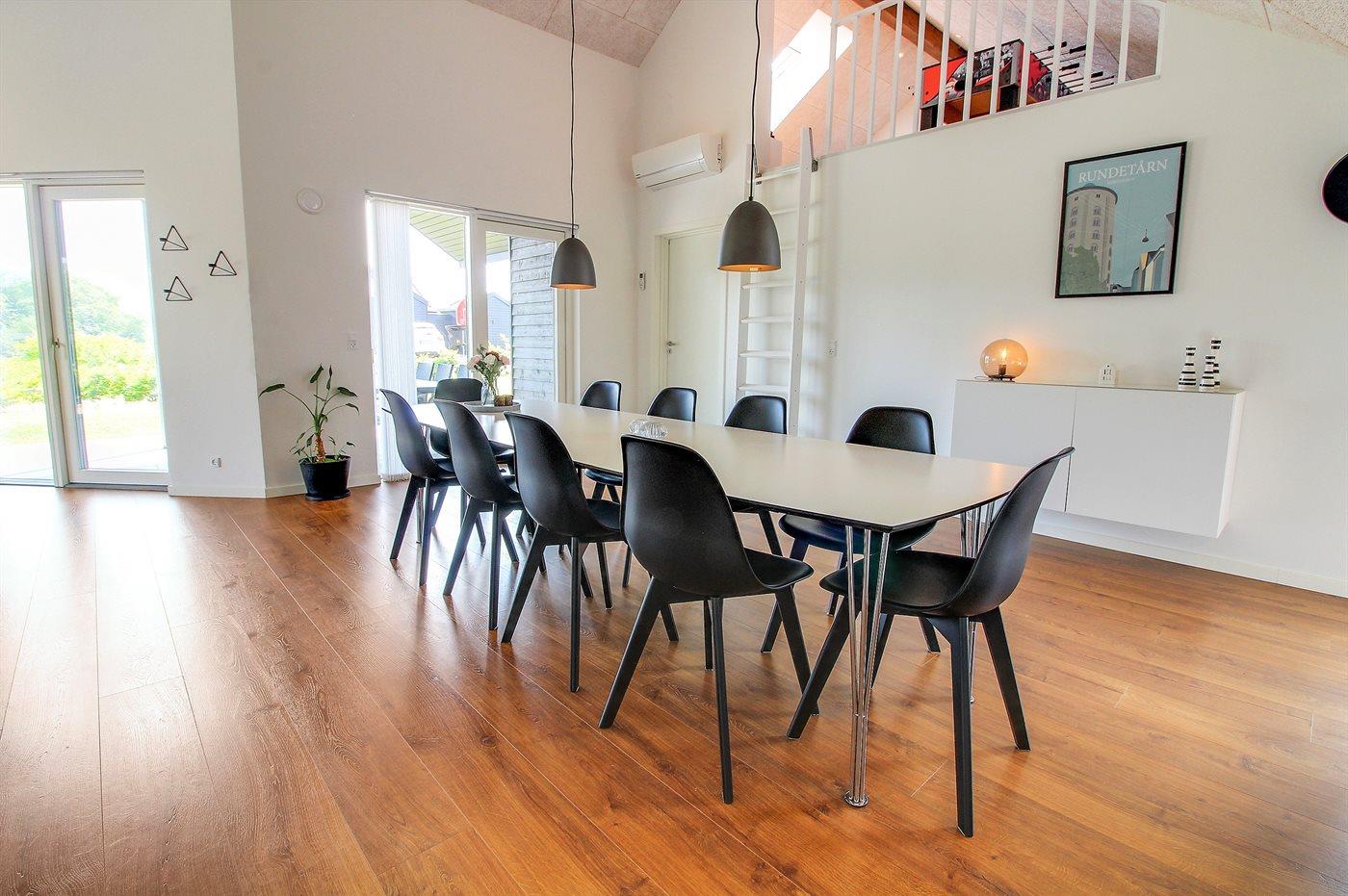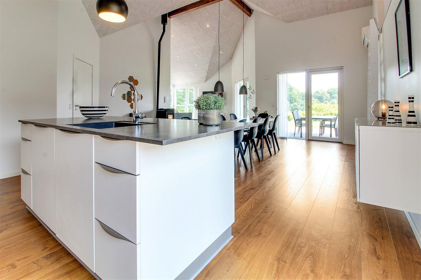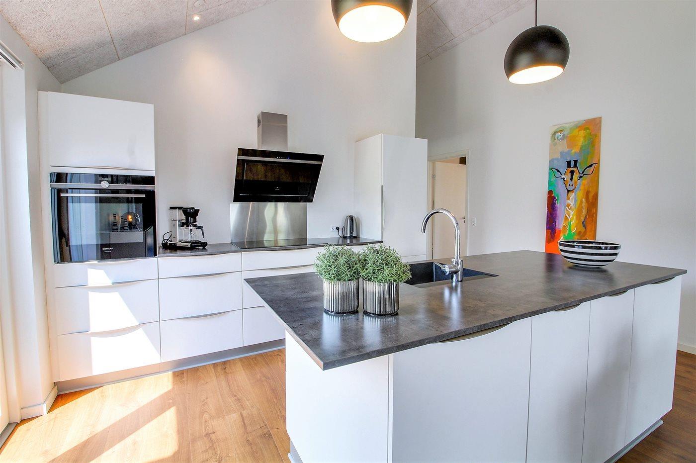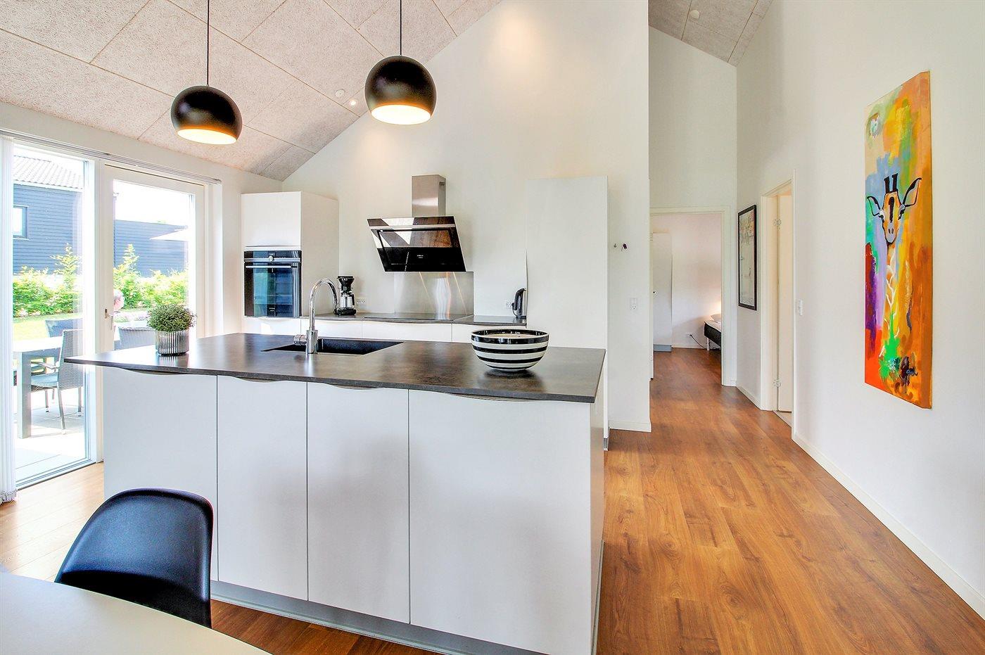 Køkkenet er udstyret med 1 køleskab. Der er 4 induktionskogeplader, varmluftovn, mikrobølgeovn samt opvaskemaskine.