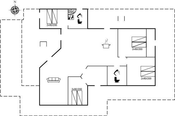 Der er i alt 4 soveværelser. Sovepladserne fordeler sig på: 8 sovepladser i dobbeltsenge. 2 sovepladser i enkeltsenge. 2 af disse sovepladser befinder sig på husets hems. Derudover er der 1 stk. barneseng.