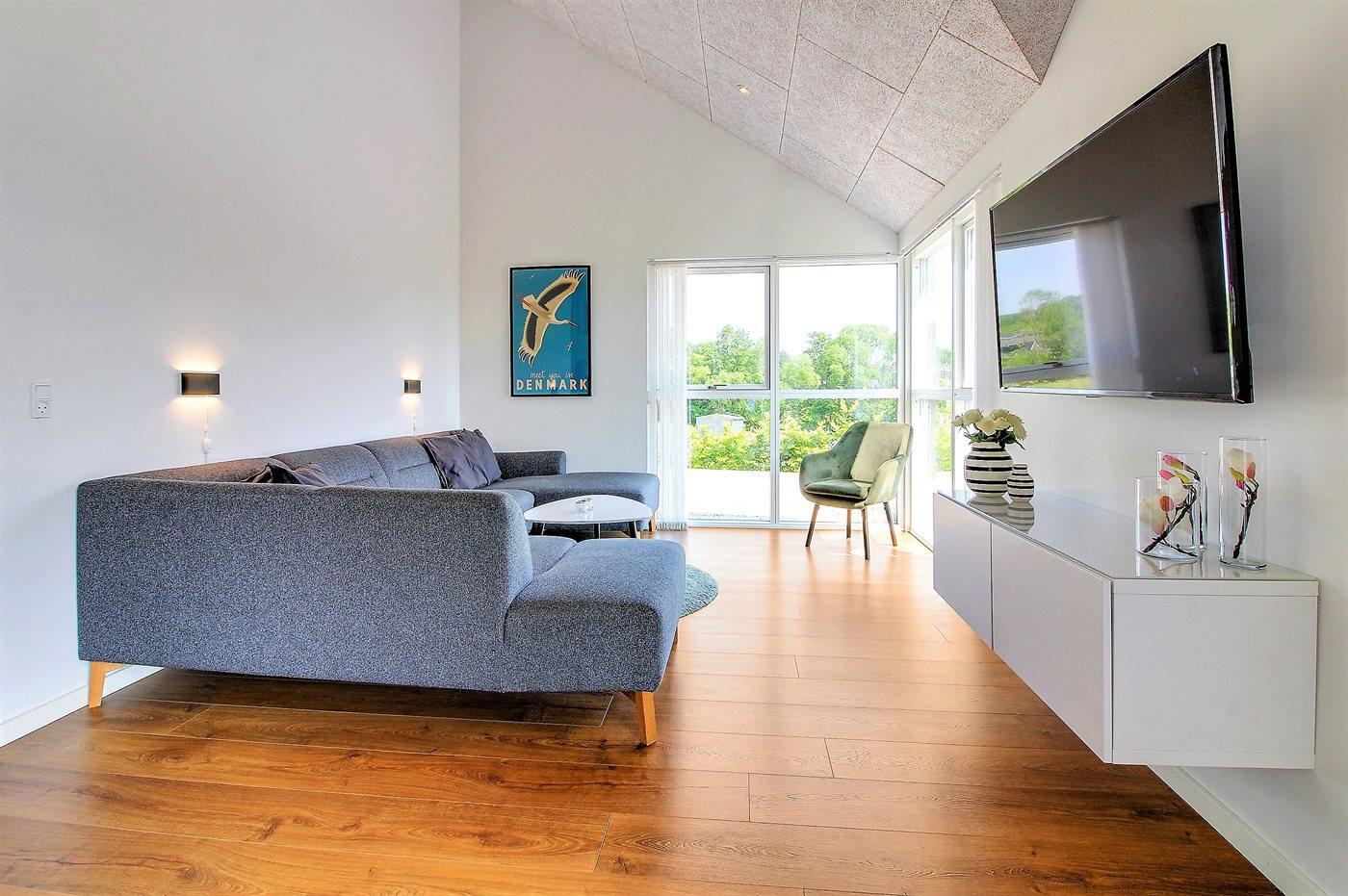 Moderne sommerhus i Kelstrup med havudsigt, spa og store terrasser til afslapning og familiehygge.